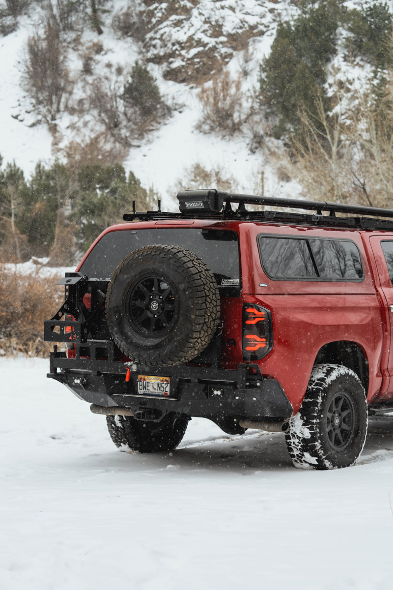 CBI - 2nd Gen Toyota Tundra Swing Arm Rear Bumper / Powder Coated Black / Angled Tire - 200-000-012-022 Item is special order and will ship from the manufacturer