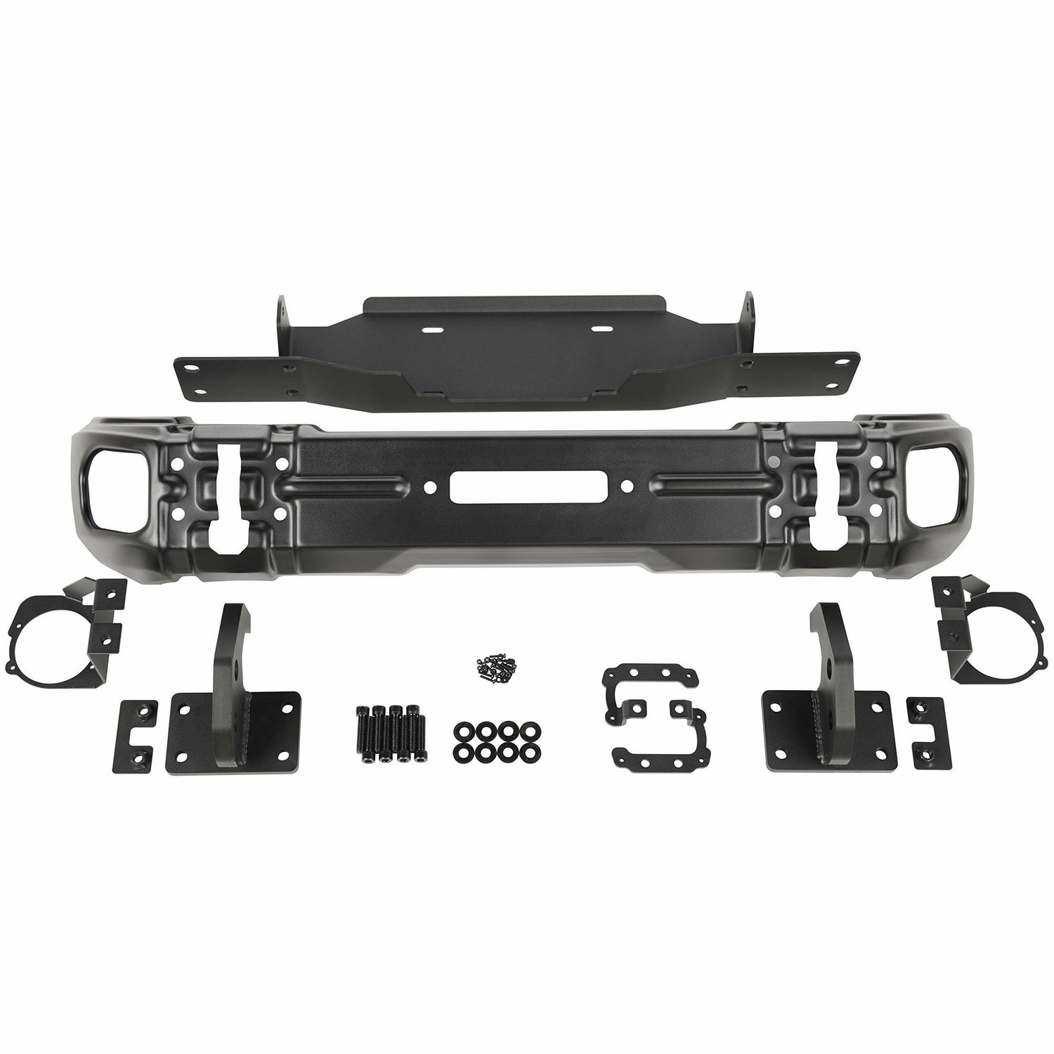 Rugged Ridge took the radical off-road look of our popular JL Arcus bumper and made it available for all devoted 2007-2018 Wrangler JK guys/gals. This patented design utilizes a high-strength 11-gauge steel shell surrounding a ?-inch thick steel winch plate, capable of holding most model winches up to a 12.5k lb. rating. We made sure the Arcus is no lightweight when it comes all those cool options you find on pricier bumpers either, only the Arcus Stubby Bumper Set makes them standard equipment. Take our massive 1-inch thick recovery hooks that literally scream HARDCORE?each hook is dual cross-drilled so they accept both 7/8 and ?-inch D-rings giving you a recovery option for any situation. Clever recesses in the bumper offer direct frame access for effective lifting of the Jeep with a hi-lift jack. Built-in fog light pockets accent the overall appearance and accept factory fog light assemblies. The Arcus Stubby Front Bumper features a high-quality satin black powder coat finish with a fine texture, because nobody said brawny can?t be beautiful. Patent Pending.