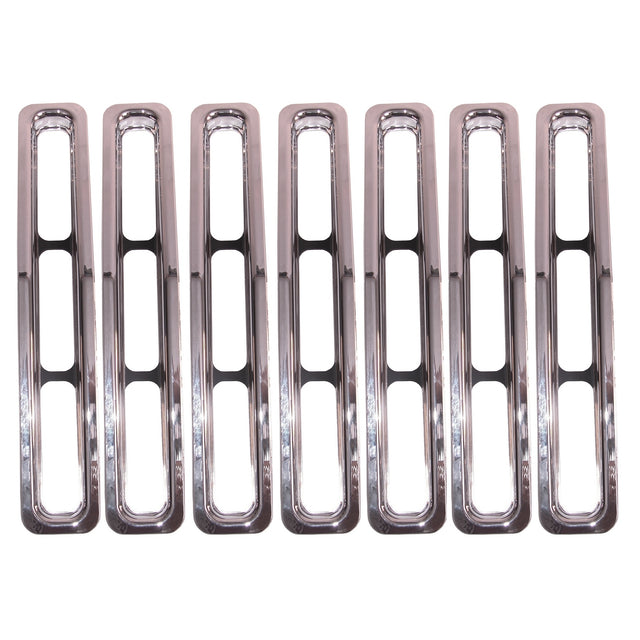 Grille inserts are a great way to dress up the front of your Jeep. These chrome UV treated grille inserts add great styling and a unique appearance to bring the look of any Wrangler to a new level. All Rugged Ridge inserts easily install without drilling or tools just click them in and go for an excellent fit and finish.