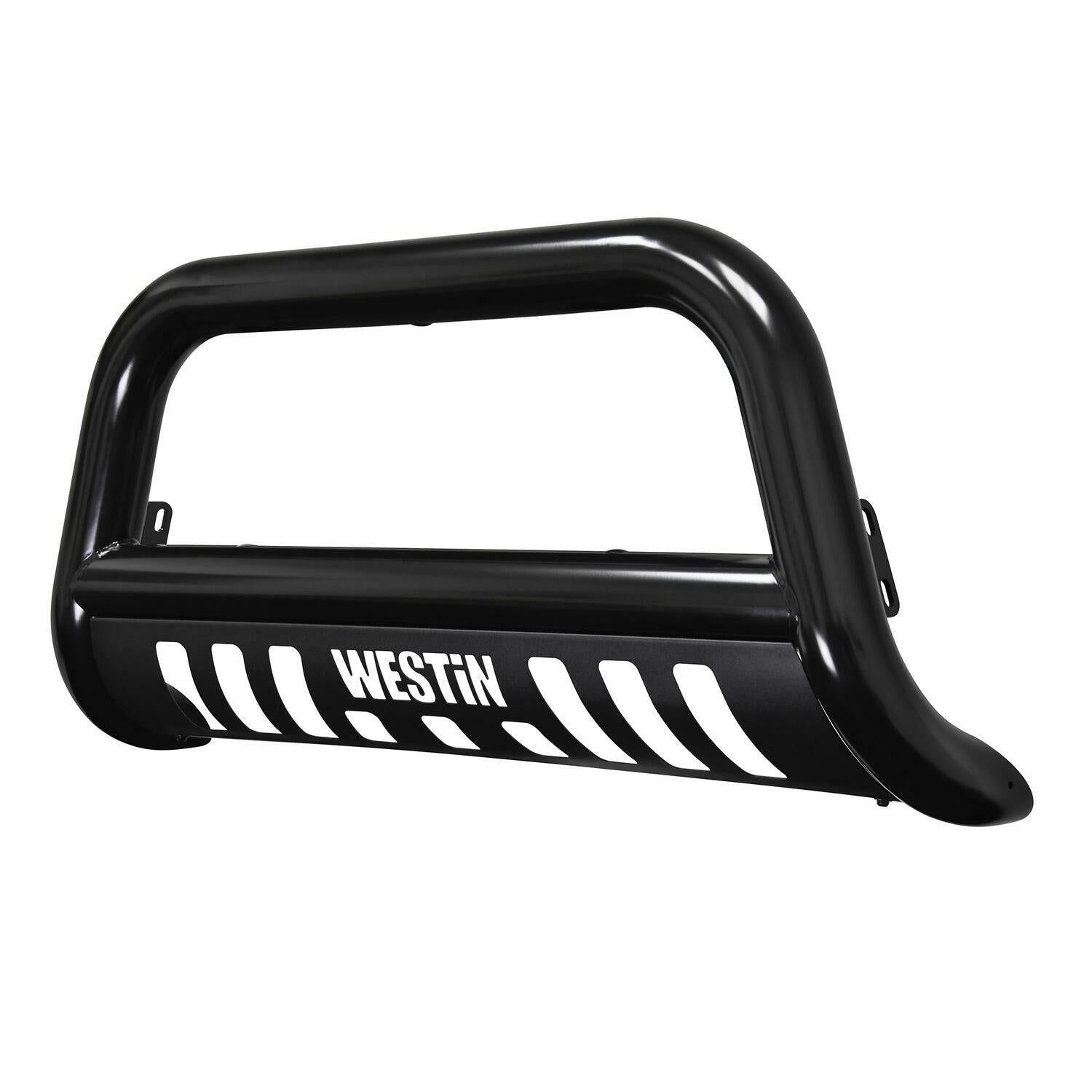 Westin(TM) E-Series Bull Bars are a front-end light bar designed for trucks and larger model SUVs. It is made of 3 diameter polished stainless steel tube. It mounts utilizing existing vehicle mounting points and installation does not require any drilling to the vehicle frame. Comes complete with mounting kit the Westin(TM) E-Series Bull Bar provides a mounting point for 2 auxiliary lights up to 6 in diameter. It features a die-cut Westin(TM) block logo design on the stainless steel skid plate unique to the Westin(TM) E-Series Bull Bar.