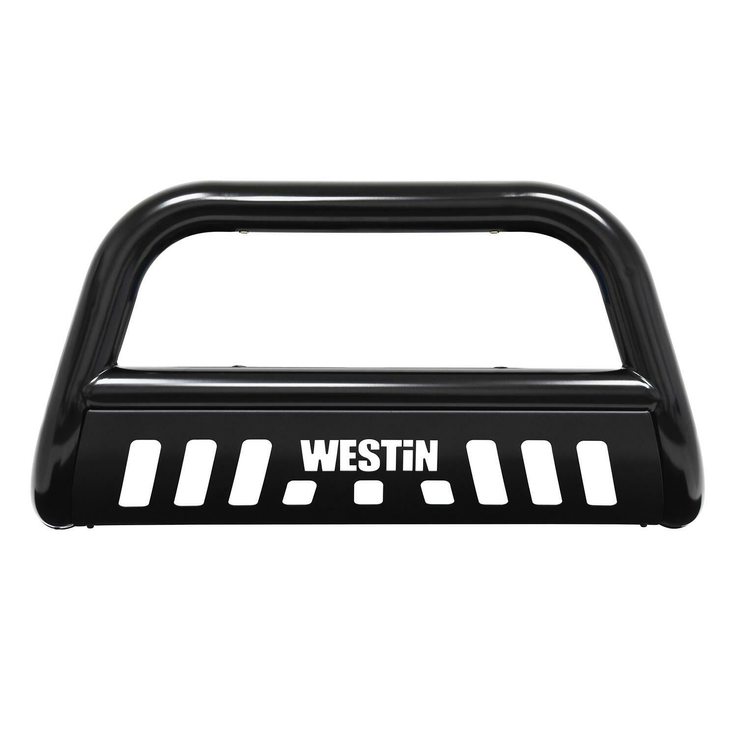 Westin(TM) E-Series Bull Bars are a front-end light bar designed for trucks and larger model SUVs. It is made of 3 diameter polished stainless steel tube. It mounts utilizing existing vehicle mounting points and installation does not require any drilling to the vehicle frame. Comes complete with mounting kit the Westin(TM) E-Series Bull Bar provides a mounting point for 2 auxiliary lights up to 6 in diameter. It features a die-cut Westin(TM) block logo design on the stainless steel skid plate unique to the Westin(TM) E-Series Bull Bar.