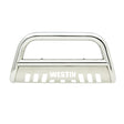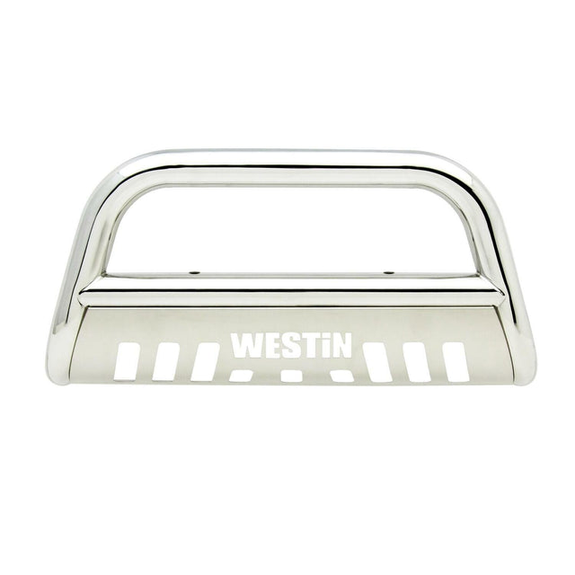 Westin(TM) E-Series Bull Bars are a front-end light bar designed for trucks and larger model SUVs. It is made of 3 diameter polished stainless steel tube. It mounts utilizing existing vehicle mounting points and installation does not require any drilling to the vehicle frame. Comes complete with mounting kit the Westin(TM) E-Series Bull Bar provides a mounting point for 2 auxiliary lights up to 6 in diameter. It features a die-cut Westin(TM) block logo design on the stainless steel skid plate unique to the Westin(TM) E-Series Bull Bar.