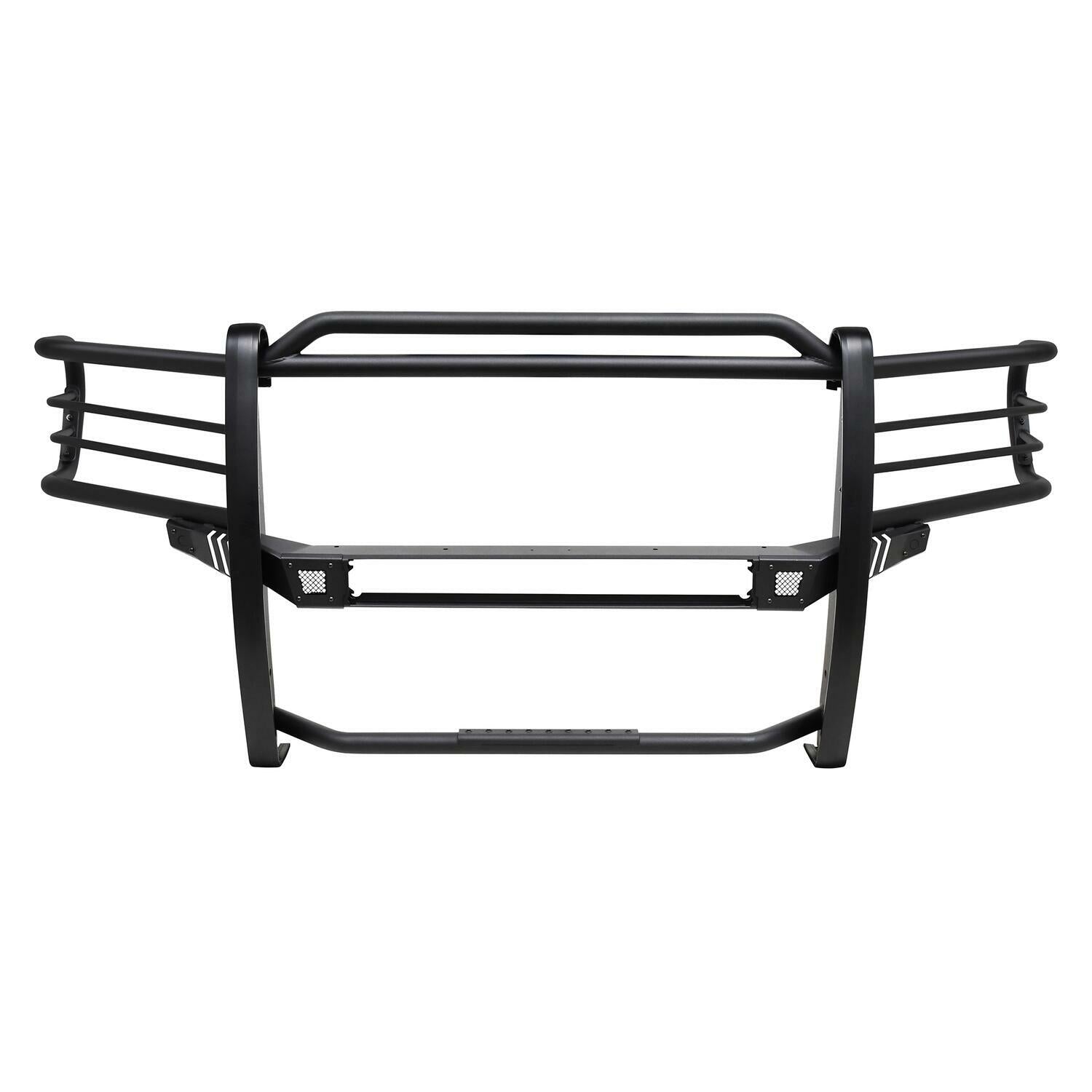 Westins Sportsman X Grille Guard effectively combines aggressive styling with heavy duty front end protection. Engineered to provide both great looks and performance, Sportsman Xs unique design compliments todays larger grille designs, and is available to fit most full and mid size truck applications. Sportsman X has an optional detachable mesh panel (sold separately) which is specifically designed to fit the opening in the center section of Sportsman X Grille Guard, or can be removed to accommodate the flush mounted 26" dual row LED light bar (sold separately). A smaller removable mesh panel designed for the factory sensor location opening is included as standard with Sportsman X. For specific Chevy and Dodge/RAM applications a Sportsman X Sensor Kit (sold separately) is available. An exterior step plate is located on the 1-5/8" bottom tube to provide easy access to the engine compartment. Built with heavy duty 2-1/4" upright rubber strips and 1- 5/8" outer tubes, Sportsman X Grille Guard is designed to provide protection and style for years to come.