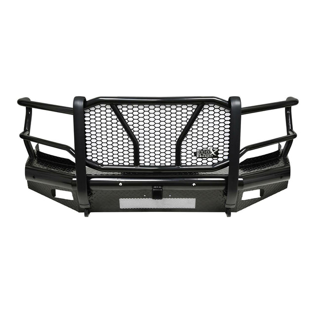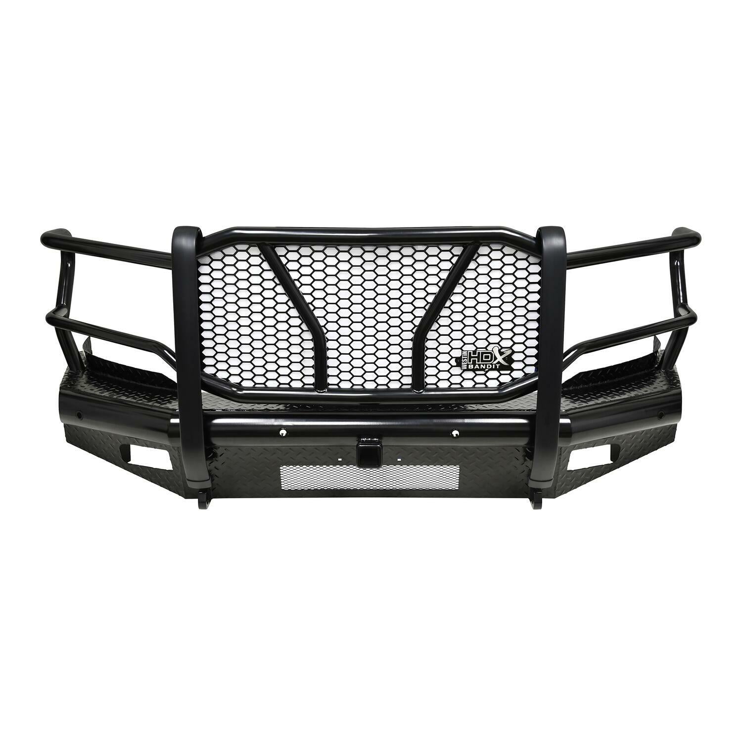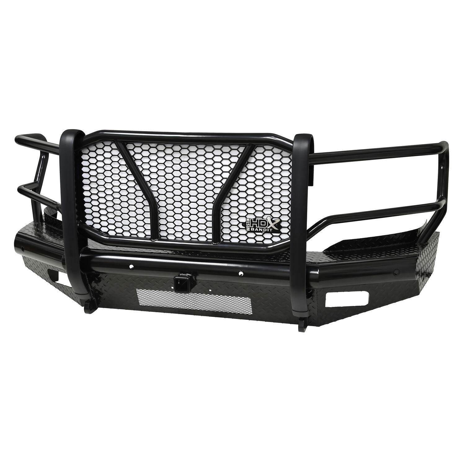 Westins HDX Bandit Bumper combines a heavy duty diamond plate steel bumper constructed of schedule 40 steel pipe with a stylish grille guard featuring 2" diameter outer wraparound wings and 2 3/4" wide upright rubber strips. Designed to protect headlights, grille, hood and front fenders from road hazards, debris and wildlife damage. Features a stylish metal honeycomb mesh screen, which allows maximum airflow to the intercooler or radiator area while accenting the front end styling with a clean and rugged look. Removable mesh screens allow for factory camera and adaptive cruise control options available on some late model Ford applications. HDX Bandit Bumper includes a built-in 2" receiver hitch and (2) heavy duty 9,500 lbs bow shackle mounts, capable of delivering multiple towing options. Compatible for factory fog lamps or LED post mount lights. In addition, some late model Ram and Chevrolet applications feature provisions for factory parking sensors. Bolt-on installation with hardware and mounting brackets included. Available in black powder coat finish.