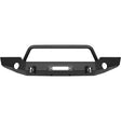 Westins WJ2 Full Width Front Bumper with Bull Bar is constructed with 3/16-inch plate steel and fits most double or single row 20 light bars. The Bull Bar on our new WJ2 Stubby Bumper is designed to mount and protect your light bar. The product is designed to utilize both styles of factory fog lights or round post lights. With Westins new WJ2 Full Width Bumper, your winch fits inside the bumper to allow maximum air flow to your vehicles radiator and is designed to allow winch installation with your bumper already installed – most other brands wont! Features Rock Light mount points on lower bumper corners, holes to hide light harness wires, and 2 front off-road jack points. Product offers recovery hooks with a recovery shackle mount point to allow easy tow strap attachment. Includes bumper, mounting hardware and install instructions.