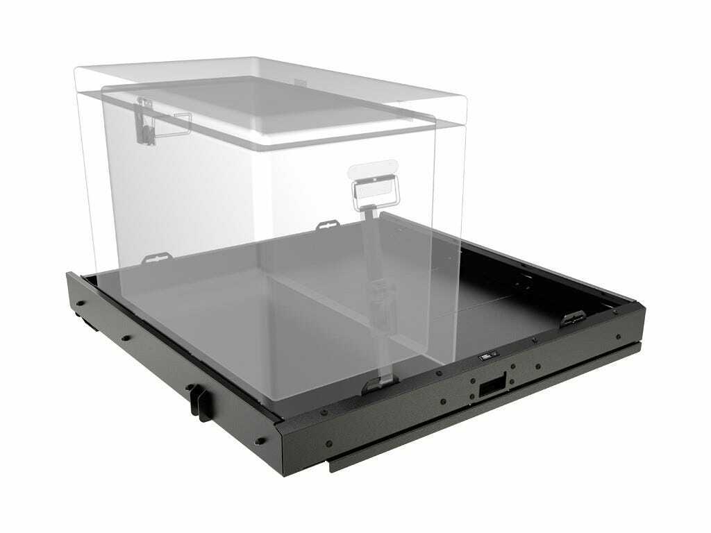 This flat drawer can hold a refrigerator along with chairs, cargo boxes, and other gear. Or it can simply be used to easily access groceries and other everyday items.Secure up to a 52L (or equivalent) size fridge, with additional room for storage -- such as the Front Runner Wolf Packs or Cub Boxes, tents, chairs, camp kitchen items, tool kits, etc. Mounts to the existing tie down points in the bed of the JKU and does NOT REQUIRE DRILLING into your 2011 + Jeep Wrangler JKU. Push to close dual latching lock securely keeps the unit closed and rattle-free. Works with the factory Sub Woofer in place. When extended, 100% full access to the storage cubby. Features multiple tie down points for Stratchits or many other style straps. Load Rating: 113 kg / 250 lbs. Finished with the same durable black powder coating as Front Runner Roof Racks and other Front Runner products. The Front Runner JK Cargo Slide is the perfect companion to the VACC021. If you own a 2007 - 2010 JKU, installation of this product requires drilling 2 9mm holes into the body of your vehicle. See Installation Instructions for more details. This product was not designed for 2-Door JK models.All Front Runner Storage Systems are backed by a 2 year warranty.