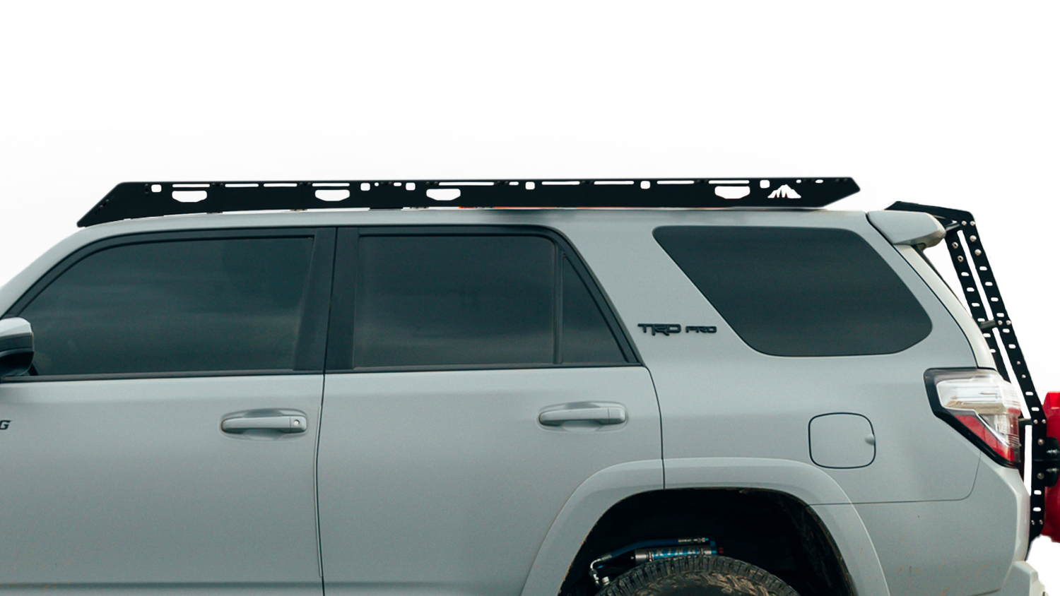 This full-length aluminum roof rack, for the 2010-2024 5th Gen 4Runner, expands on our lineup of tried and true rack systems. Our racks are some of the toughest on the market and are designed to get your gear to the places that matter the most. Explore more and worry less with our industry-leading ¼” thick aircraft-grade aluminum side panels and stainless steel hardware.  Secure your gear by bolting into one of the 9 extrusion crossbars or by strapping it directly to the side plates. This rack is “drill-free” and requires zero modification to your vehicle.