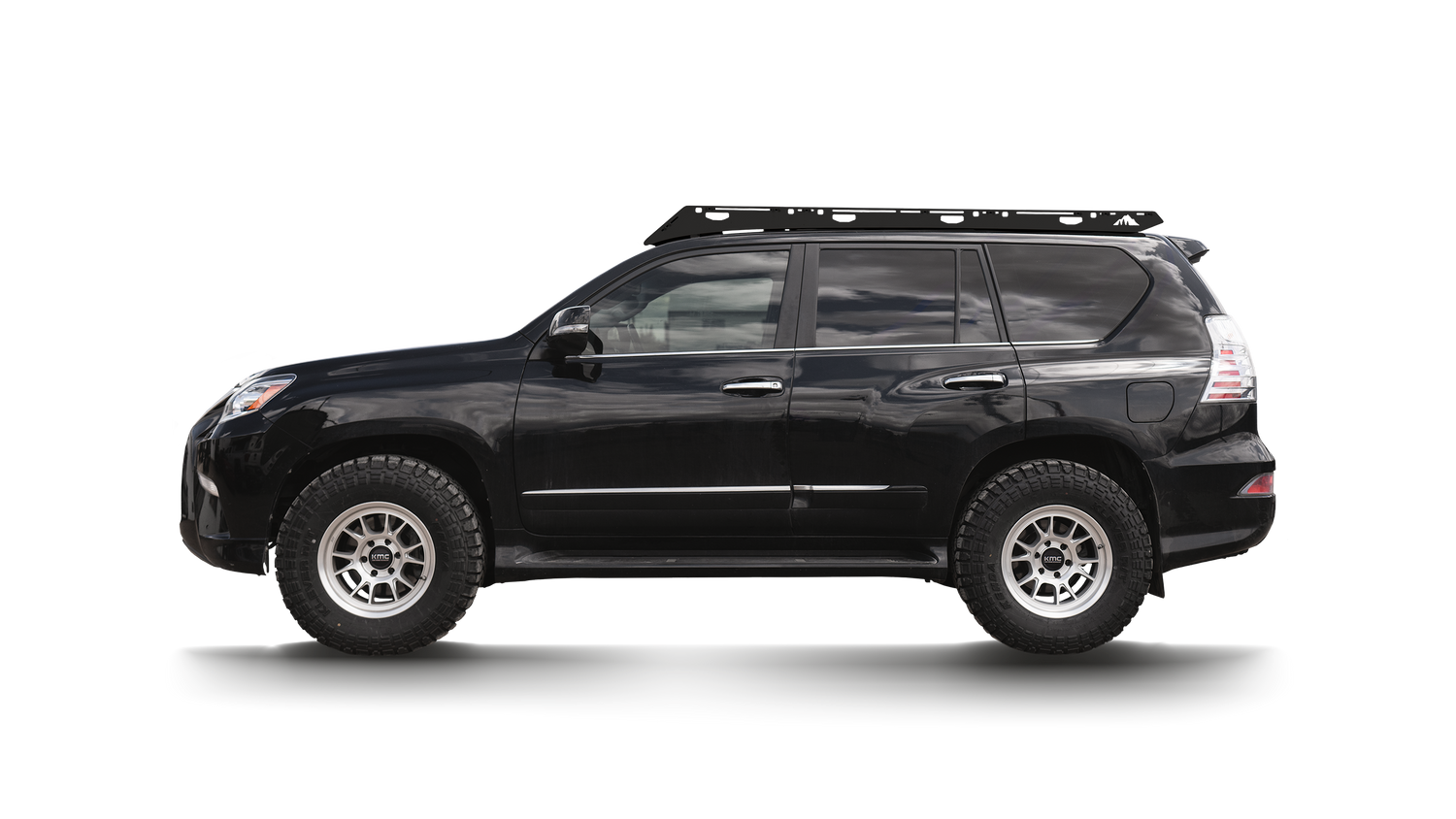 This full-length aluminum roof rack, for the 2010-2023 Lexus GX460, expands on our lineup of tried and true rack systems. Our racks are some of the toughest on the market and are designed to get your gear to the places that matter the most. Explore more and worry less with our industry-leading ¼” thick aircraft-grade aluminum side panels and stainless steel hardware. Secure your gear by bolting into one of the 9 extrusion crossbars or by strapping it directly to the side plates. This rack is “drill-free” and requires zero modification to your vehicle.