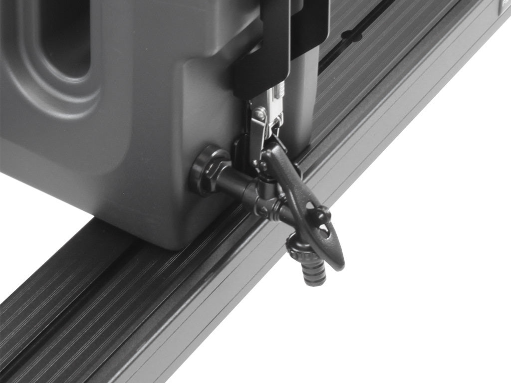 20L / 5.2 gal capacity Made of food-grade polyethylene and is BPA-free. Rack mounting bracket and lockable tap included. Includes the brackets necessary to mount the tank to your Roof Rack. The mounting bracket features a tap and latch with safety catch. Both are lockable with the Front Runner RRAC134 (sold separately). The tank has 1/2'' (BSP thread) polyethylene fitting for the supplied tap or any other 1/2'' fitting.