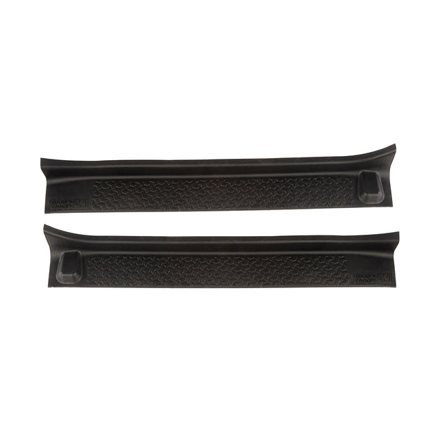 Rugged Ridge created these All Terrain Door Entry Guards to prevent the unsightly scuffs and scratches that happen just by climbing in and out of your Jeep. Defending those unprotected door sills couldn?t be any easier. When you install these Door Entry Guards, you?ll be preserving your precious paint and adding a cool accent at the same time. Constructed of a super-tough thermoplastic, each guard features an inlaid all-terrain tread pattern so they look just as great as they work- whether the doors are on or off. And installation is a breeze with the provided automotive-grade adhesive foam tape. Sets are available for both 2 and 4-Door JL models. Patent No. D627,285