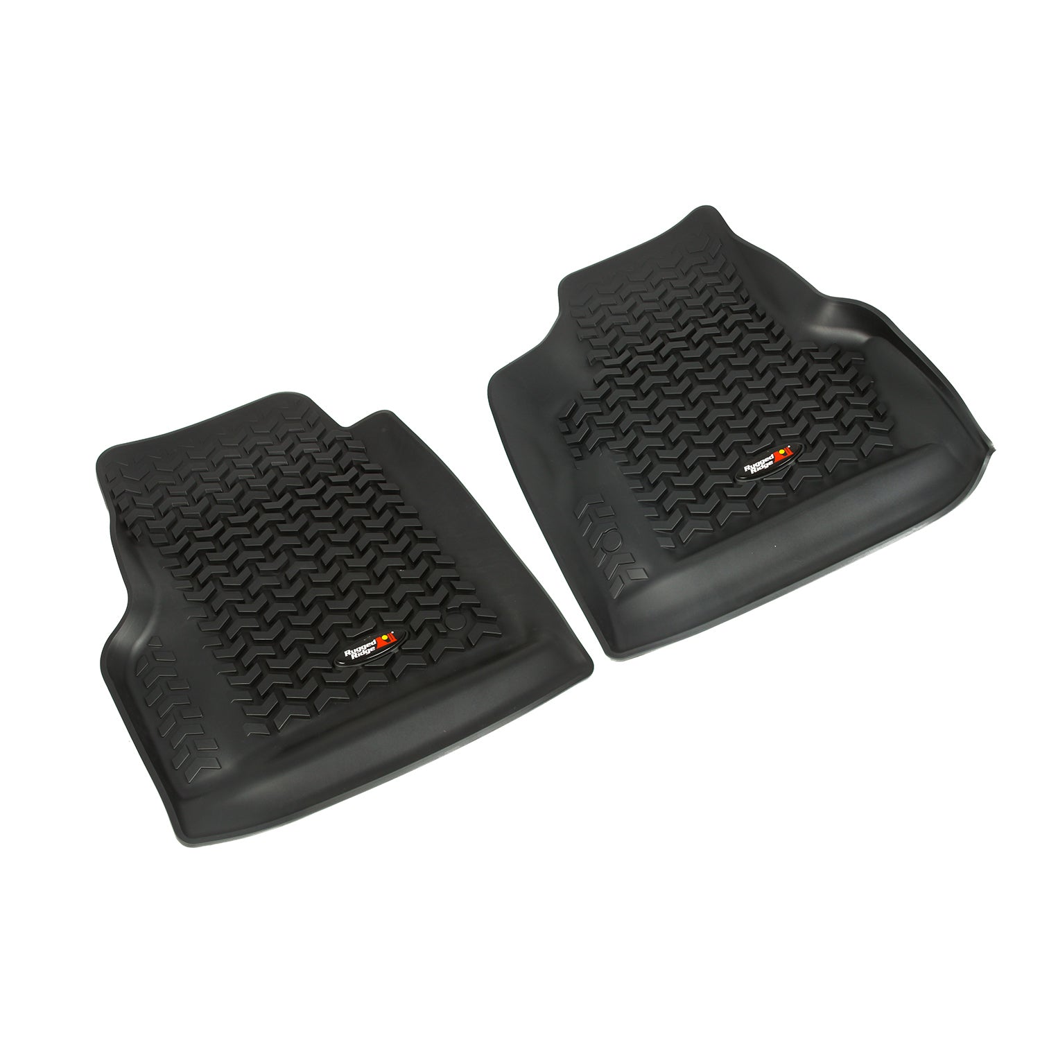 Rugged Ridge Floor liners provide complete protection for the cabin floor of your vehicle while keeping it looking factory fresh. Each liner is perfectly contoured to your vehicle's floor for precise secure fitment (floor hook attachment where applicable). The raised lip captures all spills, water and debris keeping your interior pristine. The Chevron-shape patented Deep Tread Technology channels liquid away from your shoes keeping them dry. Made of a durable OE-quality Thermoplastic material that can withstand the rigor of daily abuse. Backed by our Limited Lifetime Warranty. Patent 8,163,369, D627,285