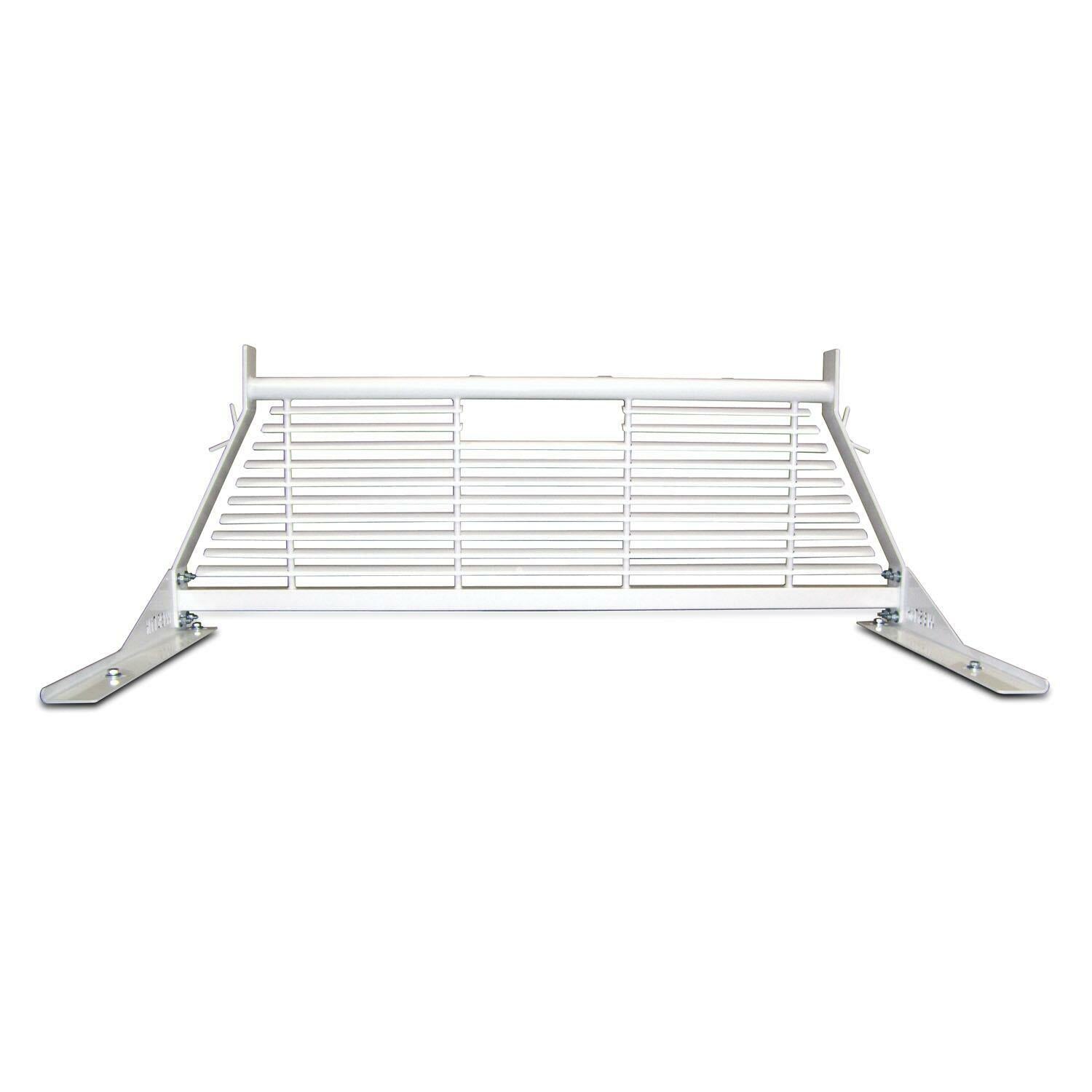HDX Commercial Grade Headache Rack protects your rear window from potential damage from shifting cargo. Welded tie-off hooks for securing your load are standard on all applications. Angled louvers keep sunlight out the cab cool and prevent UV damage to your interior all while allowing unobstructed visibility. 4 mount tabs give you the option of adding safety lights or accessories. Accommodates all major brand tool boxes. 2 diameter round top tube makes it easy to slide ladders