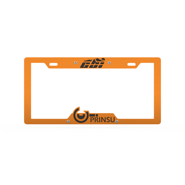 Tired of bent license plates - or using those cheap, plastic license plate covers? We've got you covered. CBI and Prinsu have designed a heavy-duty, steel license plate frame to protect your license plates on the trail and on the road. This rugged plate cover will universally fit all USA license plates and easily installs to any vehicle's factory mounting bracket with standard hardware. Each piece utilizes stainless steel rivets for superior strength, with powder coating available in eight different color combinations for extra durability and style. This is a great addition to any vehicle and a great way to show your love for CBI and Prinsu! Heavy Duty Steel License Plate Frame Orange/Black Uses Stainless Steel Rivets Bolts on With Vehicles Original Factory Mounting Hardware Universal Fitment Durable Can't Break It, Can't Beat It