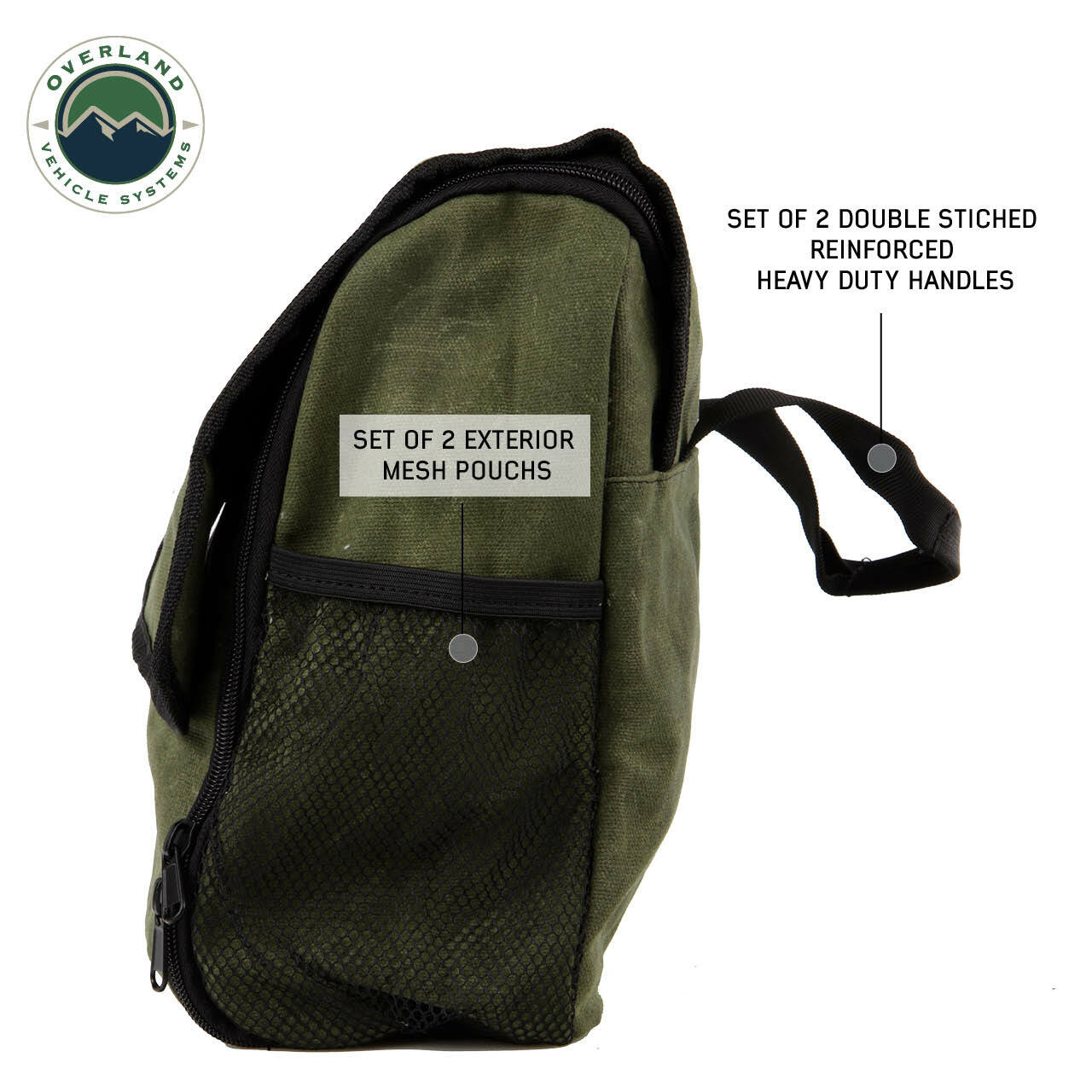 Premium Overnight Travel Bag: Overland Vehicle Systems Canyon Wax Canvas Overnight Travel Bag is handcrafted out of premium Cotton Duck infused with Paraffin. Paraffin is known as Wax Canvas. Our Canyon Wax Overnight Travel Bag offers a great way to organize your toiletries for your next off road adventure, vacation, business trip, or weekend getaway.