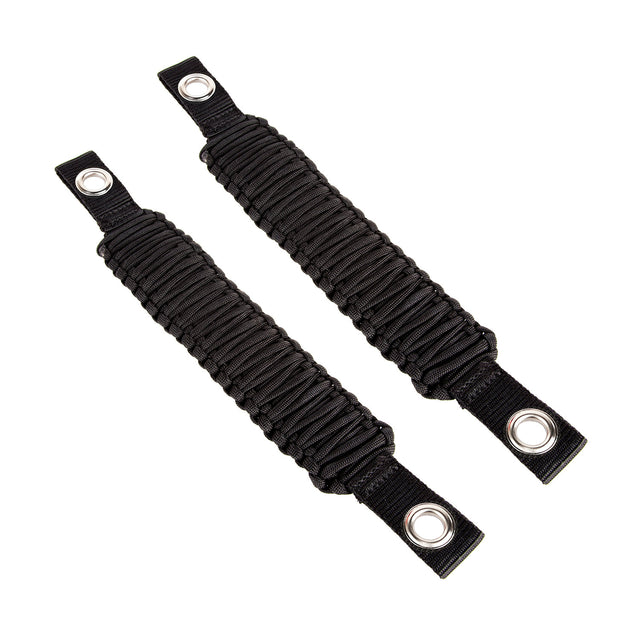 We took the convenience and utility of our classic grab handle and added the trendy tactical styling of nylon parachute cord to create a cool new take on the original- the Rugged Ridge Paracord Grab Handle. Available in two versions, Windshield A-Pillar Grab Handles attach directly to the interior a-pillars (can also be used above the rear doors on JKU models) while Rear Seat Grab Handles attach to the headrest posts of your JK?s front seats. Paracord Grab Handles come in pairs and are available in a sleek black color that looks great with any color interior.