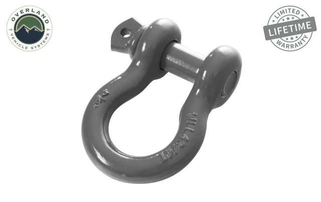 Overland Vehicle System 3/4 Recovery Shackle in Gray is heavy duty forged D ring style shackle. Each OVS shackle has a two stage powder coat.