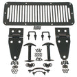 This black nine piece hood kit from Rugged Ridge was powder coated in a semi- gloss finish to protect your investment against the elements for a long lasting sleek look. This kit offers a bolt on , no drill installation for a direct fit and comes with complete hardware for a trouble free installation.