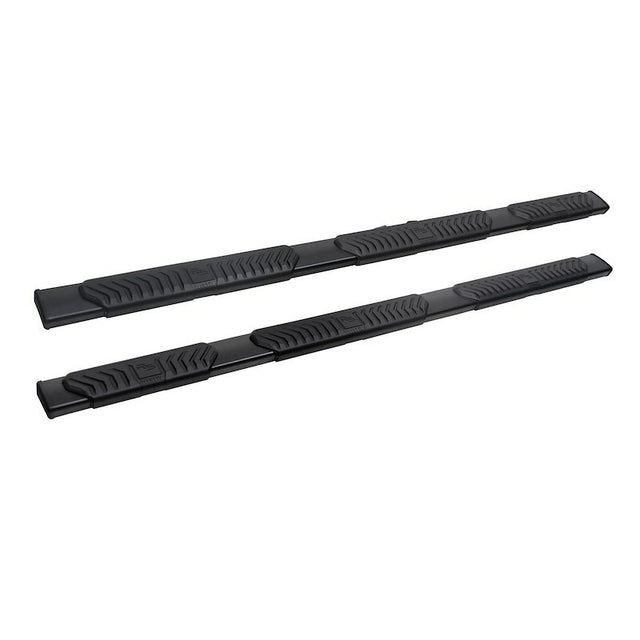 Get a boost, with Westins R5 M-Series Wheel-To-Wheel Nerf Step Bars. The extra wide 5" footprint step design provides easier and safer vehicle access for both drivers and passengers. Developed and engineered in the USA, the R5 M-Series Wheel-to-Wheel Nerf Step Bars feature three oversized skid resistant step pads allowing easy access to the vehicle cab or truck bed cargo area. Built with high-grade and corrosion resistant steel designed to mount directly to your vehicles existing rocker panels. The modular design saves you money on shipping, as no truck freight costs are required. Also included are injection molded bracket covers for a clean and stylish look. Westins exclusive Isolator Bracket supports the step bar past the truck cab, a feature that competitors do not offer. Without an Isolator Bracket, the step area that extends past the vehicle is left unsupported. Westins unique design provides added bar support without resulting in annoying creaking sounds.