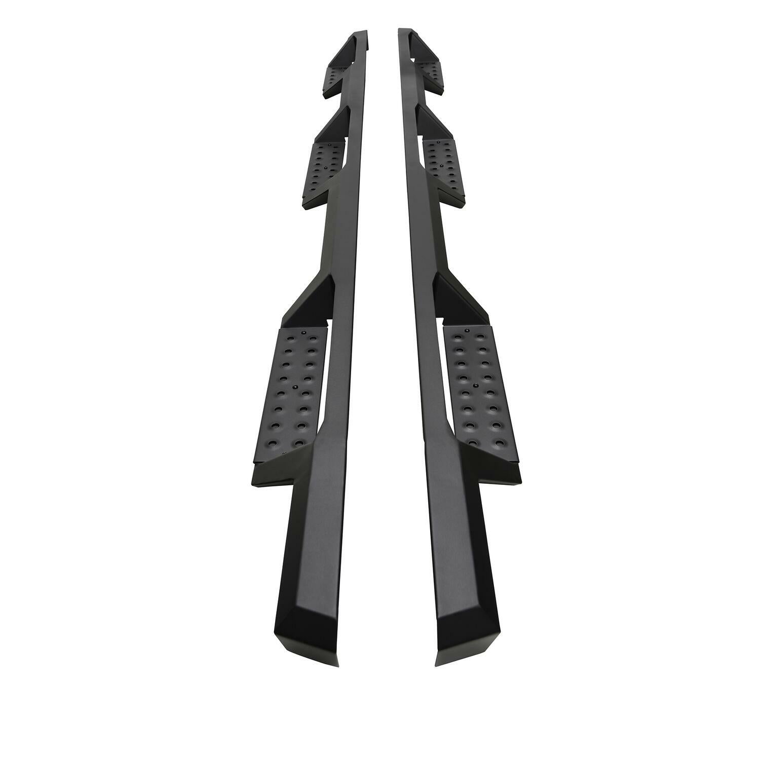Westins HDX Drop Nerf Step Bars provide the rugged look and function that truck owners need and want. They feature a solid 1-piece steel construction and heavy duty punch plates creating high traction step areas. The HDX Drop Nerf Step Bars also feature Westins notched bar design which provides more than 2" of additional toe/heel placement versus competitive brands. Available in a textured black finish that complements Westin HDX Bumpers. The HDX Drop Steps have vehicle specific applications and include a vehicle specific mount kit, installation hardware and instructions.