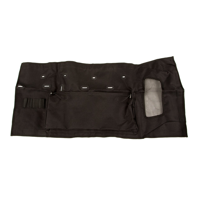 A versatile Jeep? deserves versatile accessories and that?s the reason we designed the Rugged Ridge C3 line of cargo area protection products. The C3 Tailgate Cover is the perfect complement to the Rear Cargo Cover or as a simple and effective way to make the most of your Wrangler JK?s tailgate. Constructed from a durable weather-resistant 900 denier weave PVC material that is UV protected, the C3 Tailgate Cover protects the interior from scratches and scuffs while adding valuable storage space for tools, recovery gear or those crucial fluids that always tumble around in the back. Each C3 Tailgate Cover mounts securely with the included hook and loop fasteners so the install is quick and easy and allows for simple removal. An integrated mesh screen aids with air flow through the cover to the factory vent grille.