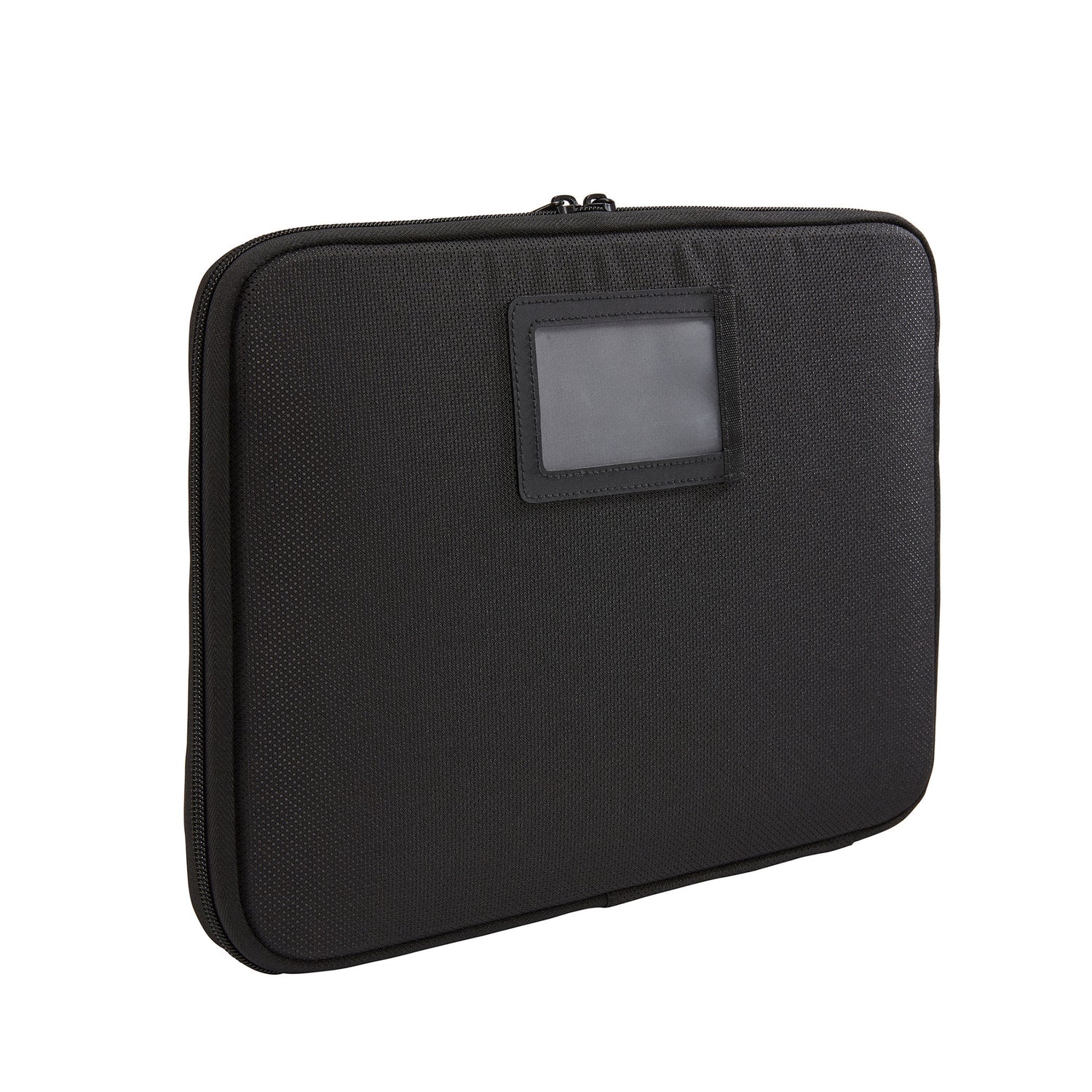 Slim, protective work-in sleeve fits Chromebooks™ with up to an 11.6" screen|Clamshell design and integrated EVA foam airflow channels allow for in-case use|Elastic corner loops keep most 11.6" chromebooks/laptops anchored in place|Zipper opens to provide access to charging port for in case and in use charging|Thick padding provides protection for device when not in use|Clear ID slot on exterior for easy identification