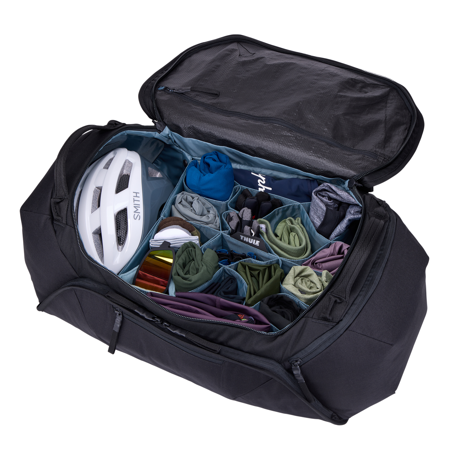 Keep all your cycling gear available and organized from wherever your ride begins - at the trailhead, race start, weekend destination or at home|55L total capacity holds 3-5 days of road bike or mountain bike gear, including seasonal accessories|Organize coordinating kits, jackets and accessories in individual cell pockets|bluesign® is a strict international criteria that ensures the protection of workers, consumers, and the environment|Visibility and efficient access to all compartments thanks to the bag structure and wide opening|Dedicated shoe pocket is lined with tarpaulin for easy cleaning|Comfortably pack any size road or trail helmet in the dedicated compartment|Store dirty laundry or after-ride clothing in the versatile lid pocket|Wear the removable shoulder strap in cross-body configuration for stable carrying while walking or riding a bike|Keep nutrition, small tools or race supplies visible but separate from clothing in front pocket|Protect GPS or keep wallet secure in the exterior zipper pocket|Protect wrap-around riding glasses while in transit in structured, soft-lined compartment