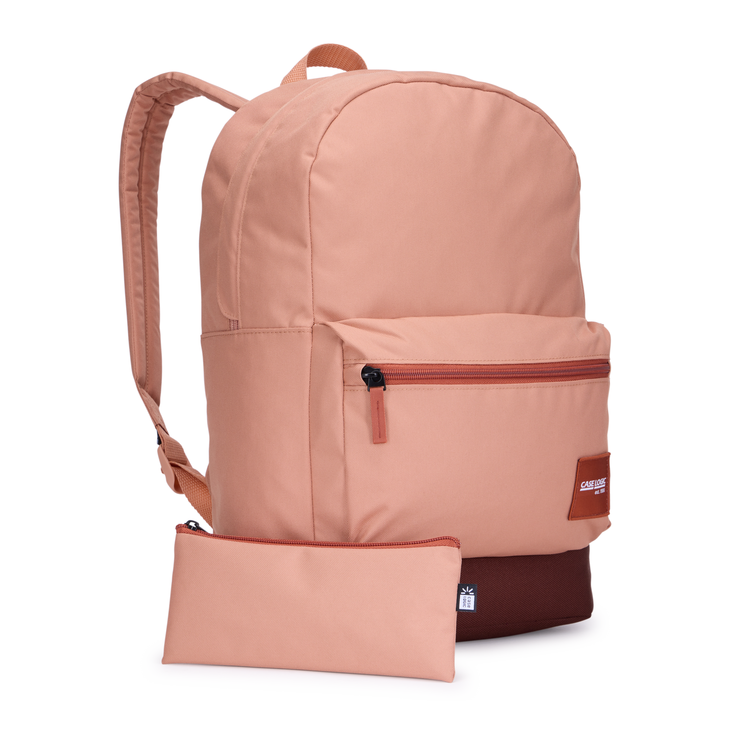 Flexible laptop storage sleeve fits laptops up to 15.6" or doubles as a stretch-fit pocket for other personal items|Contoured shoulder straps and a quilted, fully-padded back panel ensure a comfortable carry|Quick-access front pocket provides slip pockets for small electronics and pens plus room for small accessories|Large side pocket conveniently stores a water bottle or other small items|One large main compartment designed to fit books and folders|100% recycled 600D polyester body material combined with padded, durable 100% recycled 1200D polyester base that's built to last|Web haul handle to easily grab and go|Rain flap covers main compartment zipper to protect belongings|Constructed with GRS-certified recycled materials made from 11 plastic bottles