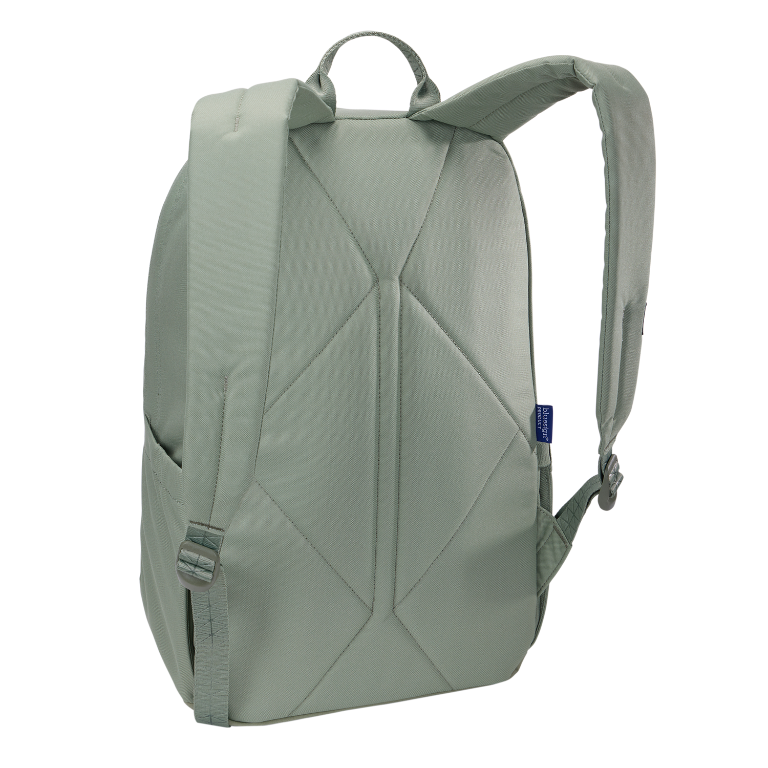 Protect up to a 14" PC or 16" MacBook® in the elevated, padded pocket|Made with bluesign® approved, 100% recycled 600D Polyester and 400D nylon fabrics|Zippered interior pocket keeps small accessories and pens secure and easy to locate|Two side pockets allow for easy storage of water bottles, power cords, and other accessories|Slip pocket allows for quick access to snacks or a key card|This backpack meets the bluesign® criteria. Made of bluesign® approved fabrics and accessories and produced in a resource conserving way with a minimum impact on people and the environment|The durable design includes a padded base panel and YKK zippers|Custom details include a geometric pattern lining, tri-colored cord puller accent, and an embossed pattern on the shoulder strap, webbing, and handle