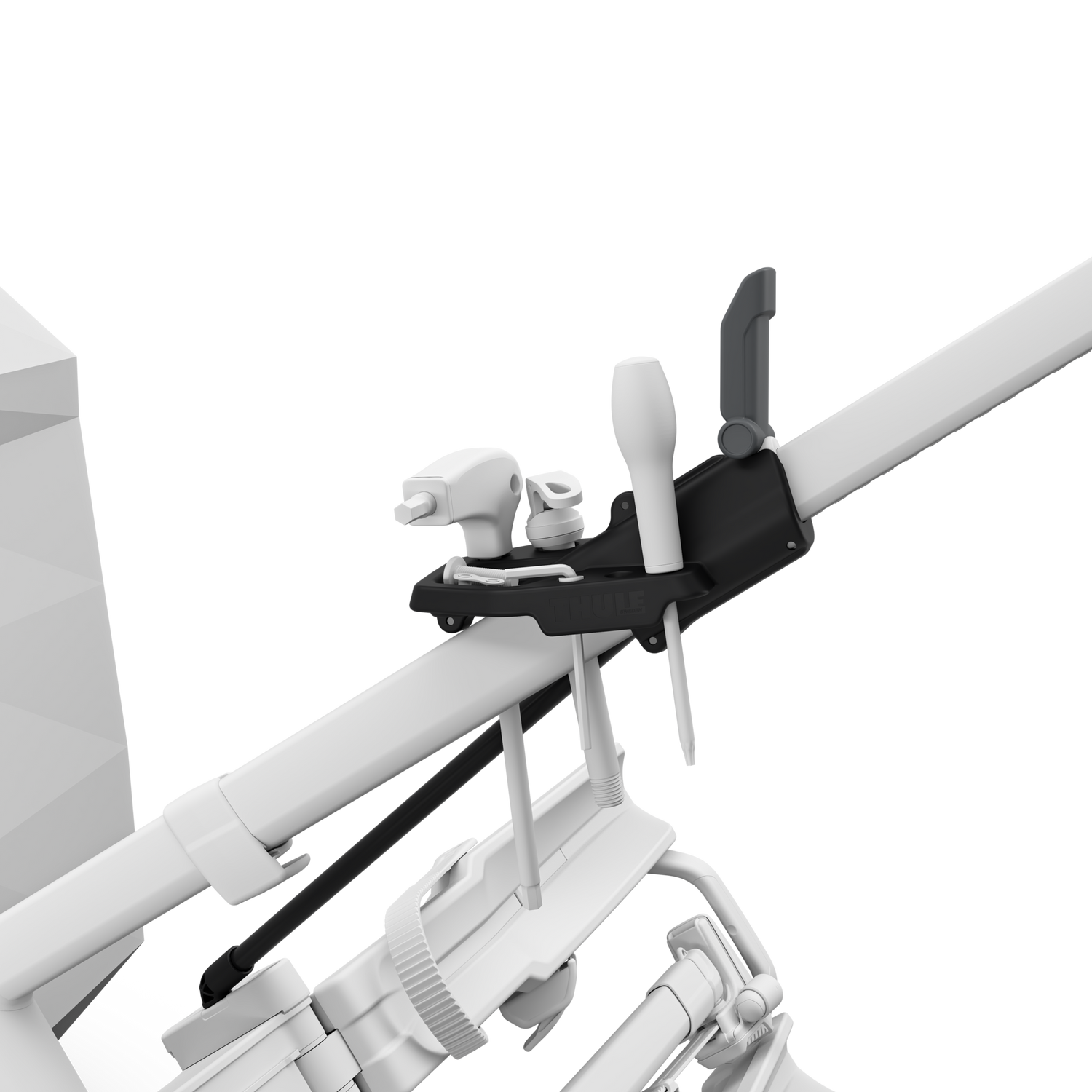 Made for easy bike adjustments and repairs|Is attached to your Thule Epos and can stay mounted - you are ready at any time|Magnetic platform for tools and parts