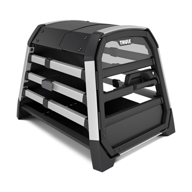 Thule Allax dog crate is crash tested from the front and the rear, as well as a simulated roll-over scenario|The innovative crumple zone adds an 10-13 cm gap, even when the crate is in its most shallow position. It compresses during a rear collision, absorbing impact and protecting your dog|Available in five to ten different sizes (depending on market) and with adjustable depth to provide a perfect fit for both your car and your dog|The door's gas damping mechanism ensures a gentle open and close, enhancing your everyday interactions|The crate has a built-in lock for added security|The window and the openings in the crate make it easy for you to check on your dog at any time|The crate is equipped with an escape hatch, that enables opening of the crate from the backseat|Use our fit assistant and size guide to help you find the right crate size for your dog and car|Thule Allax comes with a range of practical accessories that make daily life with your dog even easier