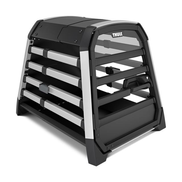 Thule Allax dog crate is crash tested from the front and the rear, as well as a simulated roll-over scenario|The innovative crumple zone adds an 10-13 cm gap, even when the crate is in its most shallow position. It compresses during a rear collision, absorbing impact and protecting your dog|Available in five to ten different sizes (depending on market) and with adjustable depth to provide a perfect fit for both your car and your dog|The door's gas damping mechanism ensures a gentle open and close, enhancing your everyday interactions|The crate has a built-in lock for added security|The window and the openings in the crate make it easy for you to check on your dog at any time|The crate is equipped with an escape hatch, that enables opening of the crate from the backseat|Use our fit assistant and size guide to help you find the right crate size for your dog and car|Thule Allax comes with a range of practical accessories that make daily life with your dog even easier