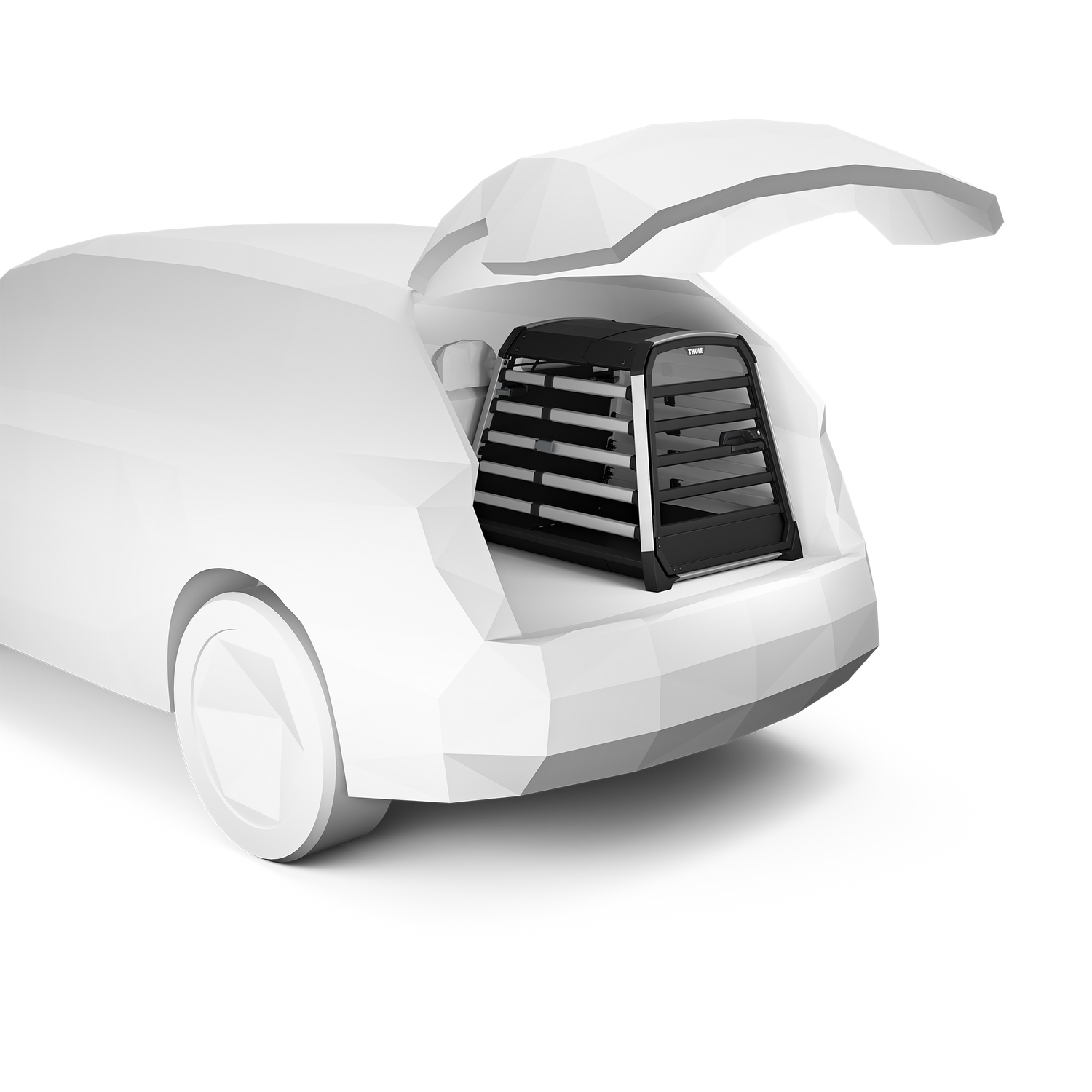 Thule Allax dog crate is crash tested from the front and the rear, as well as a simulated roll-over scenario|The innovative crumple zone adds an 10-13 cm gap, even when the crate is in its most shallow position. It compresses during a rear collision, absorbing impact and protecting your dog|Available in five to ten different sizes (depending on market) and with adjustable depth to provide a perfect fit for both your car and your dog|The door's gas damping mechanism ensures a gentle open and close, enhancing your everyday interactions|The crate has a built-in lock for added security|The window and the openings in the crate make it easy for you to check on your dog at any time|The crate is equipped with an escape hatch, that enables opening of the crate from the backseat|Use our fit assistant and size guide to help you find the right crate size for your dog and car|Thule Allax comes with a range of practical accessories that make daily life with your dog even easier