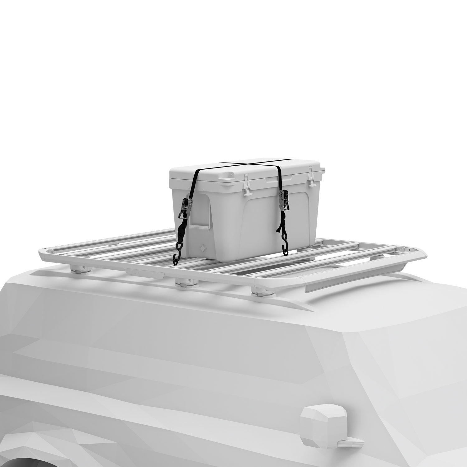 Secures loads safely on the Thule Caprock roof platform|Fits load carrier bars with T-track width 20 mm|The kit consists of two Thule straps (4.1m and 0.4m straps with S-hooks in steel) and four Thule eye bolts
