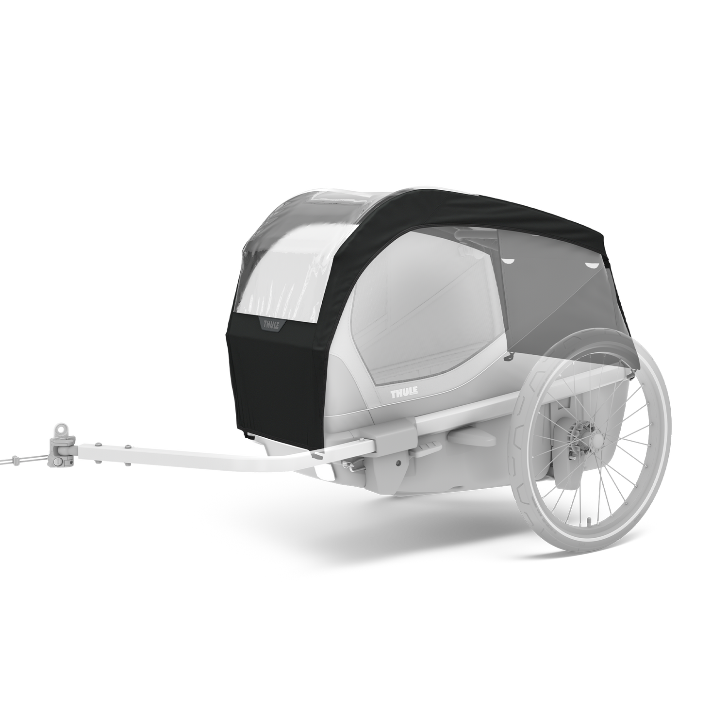 The rain cover is designed to maintain optimal airflow into the trailer, ensuring your dog stays comfortable the entire ride|The Thule Bexey rain cover is easy to install onto your trailer using the designated attachment points on the top and front of the trailer