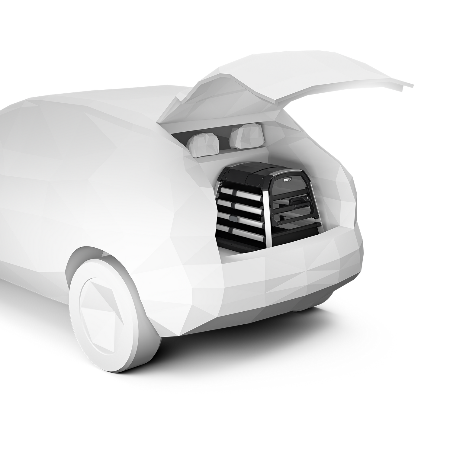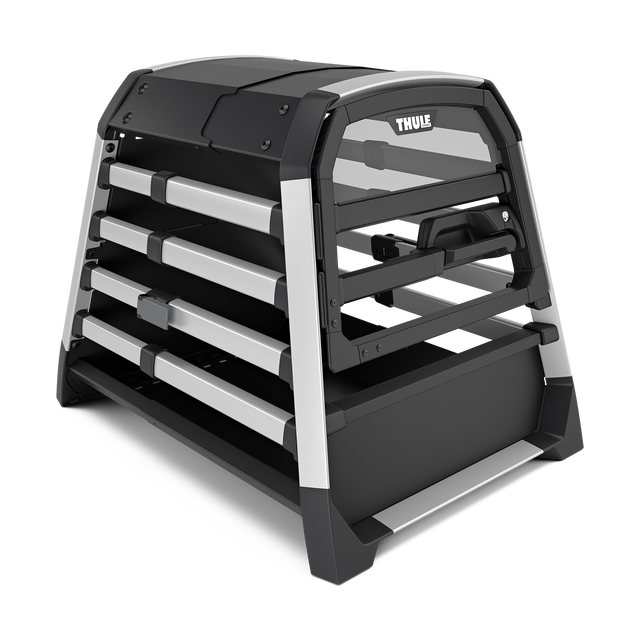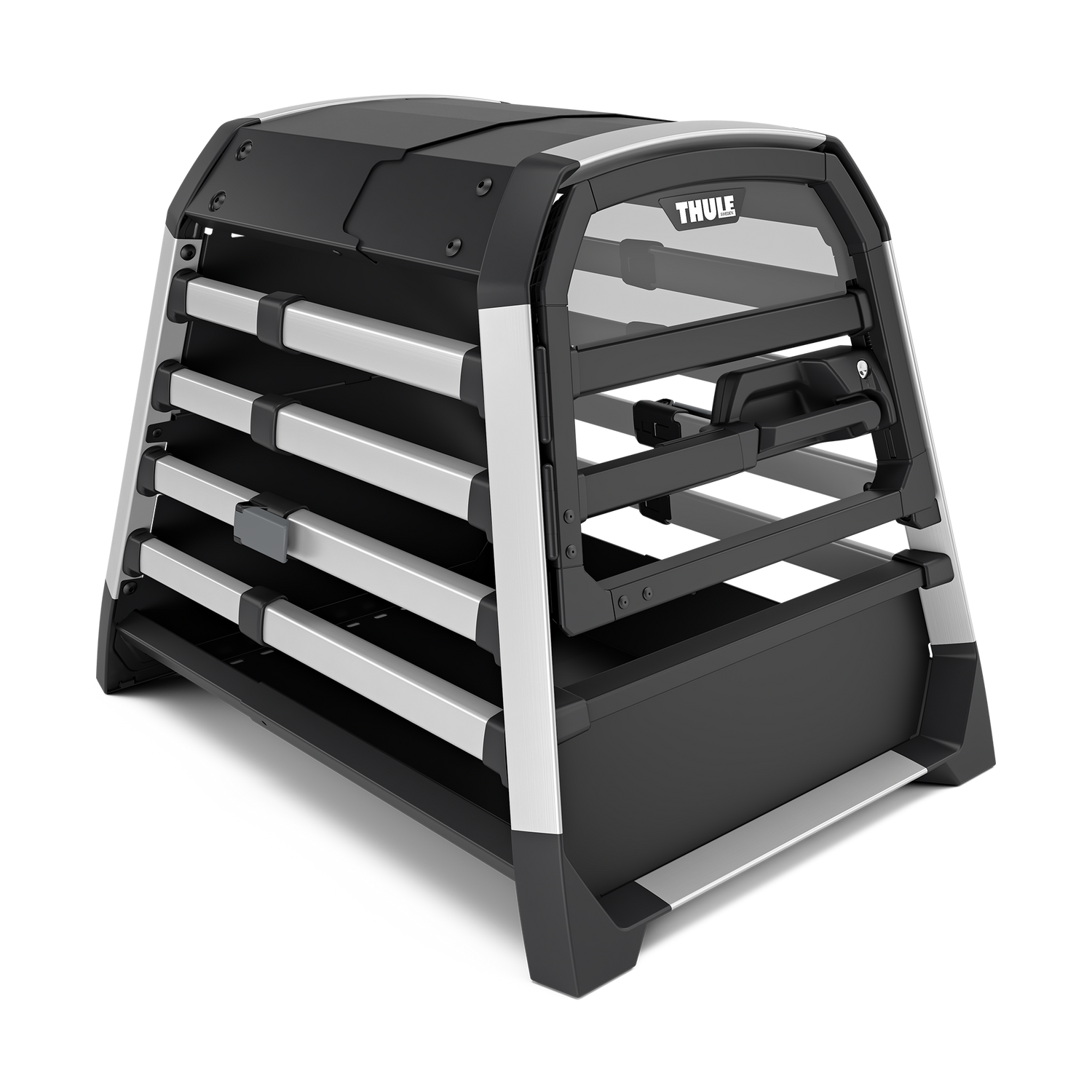 Thule Allax threshold compatible dog crate is crash tested from the front and the rear, as well as a simulated roll-over scenario|The innovative crumple zone adds an 10-13 cm gap, even when the crate is in its most shallow position. It compresses during a rear collision, absorbing impact and protecting your dog|For cars with a threshold above 40 mm and up to 170 mm for XS and up to 245 mm for S, M compact, M, L compact|Available in five different sizes and with adjustable depth to provide a perfect fit for both your car and your dog|The door's gas damping mechanism ensures a gentle open and close, enhancing your everyday interactions|The crate has a built-in lock for added security|The window and the openings in the crate make it easy for you to check on your dog at any time|The crate is equipped with an escape hatch, that enables opening of the crate from the backseat|Use our fit assistant and size guide to help you find the right crate size for your dog and car|Thule Allax threshold compatible comes with a range of practical accessories that make daily life with your dog even easier