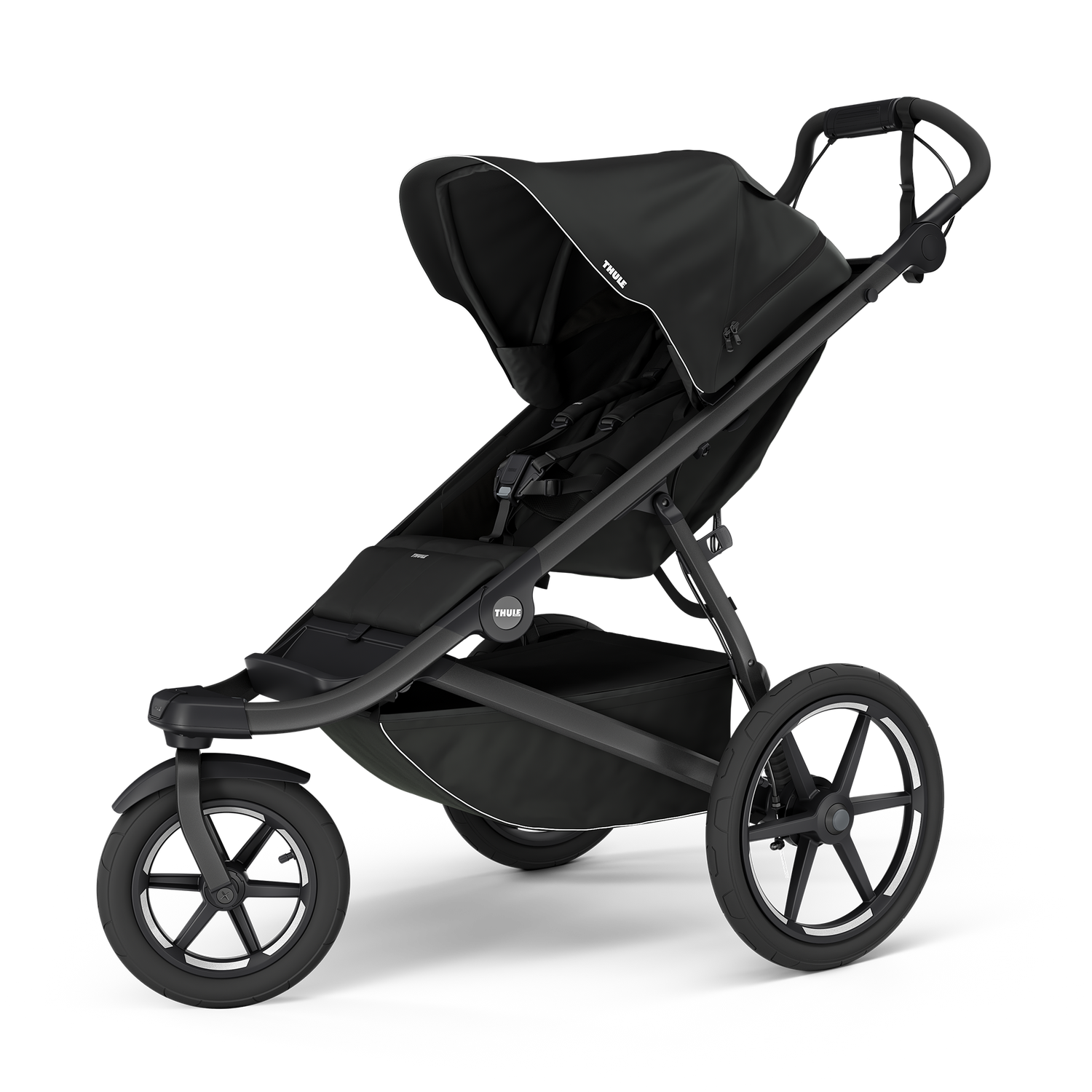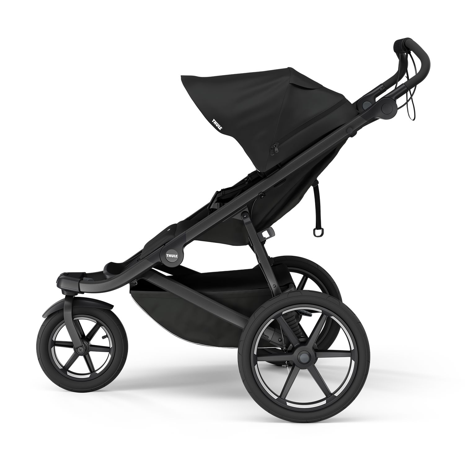 The swivel front wheel, which locks into place for higher speeds, combined with large rear wheels, makes the stroller lightweight and easy to maneuver|Built-in legrest and comfortable seat with adjustable recline gives full child comfort all day whether taking in the sights or a nap|Integrated twist hand brake for smooth, safe speed control on any terrain|Easy, one-hand, compact fold with self-stand feature for easy storage and transportation|Can be used from birth with Thule bassinet or infant car seat adapter (sold separately). Seat and canopy fabric can be removed to create a clean look|Large canopy with full coverage and ventilation ensures your child is comfortable|Secure and comfortable seat with easily adjustable 5-point padded harness with magnetic buckle|A large cargo basket with a zip-top cover, rear mesh pocket, and two mesh compartments for snacks or toys provides ample space for everything you need|Ergonomic, adjustable handlebar for maximum parent comfort|Reflective feature on canopy and wheels ensures visibility and safety|Peak-a-boo window lets you check on your sleeping child without disturbing them
