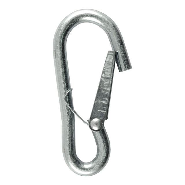 There are always some factors on the road you cannot control -- an irresponsible driver, adverse weather conditions -- but one thing you can control is the type of towing equipment you use. Just because there are threats out there, doesn't mean your towing adventures need to be dangerous. CURT offers a variety of towing safety products -- including safety chains, safety cables, hooks, links and more -- to make sure you have confidence to Bring It and trustworthy equipment to Bring It safely. CURT snap hooks are a highly secure way to connect your safety chains from your trailer to your tow vehicle. They feature a spring-loaded safety latch that turns the hook into a closed loop. Similar to a quick link, the safety latch allows for a safety chain connection that won't come loose from vehicle vibrations or jarring on uneven terrain. Snap hooks also feature a strong steel construction and come with a zinc-plated finish to outlast the elements. This particular snap hook has a 3/8" diameter and offers a gross trailer weight capacity of 2,000 lbs. Remember, when attaching safety chains, the chains should be cross underneath the trailer coupler, and each hook and chain must be rated to meet or exceed the gross weight of the trailer.