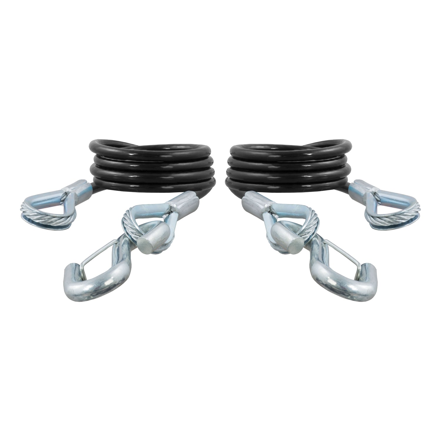 No matter how far you are planning to drive -- down the street or across the state -- using safety chains when you tow is smart, safe and required by law. Without safety chains attached, there is a serious risk of danger if your trailer becomes uncoupled from your trailer hitch. Play it safe with safety chains, and play it even safer with safety chains from CURT. CURT has a few different options when it comes to securing your trailer. An alternative to traditional safety chains is CURT safety cables. Safety cables are a medium-duty safety option and are very effective for most standard trailers. CURT safety cables are coiled so they do not drag on the ground, and they are fitted with safety latches, instead of S-hooks, to prevent them from becoming unhooked even over bumps and rough roads. One unique feature of CURT safety cables is their vinyl coating. Being coated in a vinyl skin keeps these cables well protected from rust, reduces the amount of noise they make and makes them easier to handle. These particular safety cables offer a minimum break force of 3,500 lbs. and measure a total length of 42".In our book, making safety a priority when you tow is a must. We offer all the safety equipment needed for successful towing, from our electrical components to our safety chains. The next time you hitch up for an adventure, always Bring It safely with CURT.