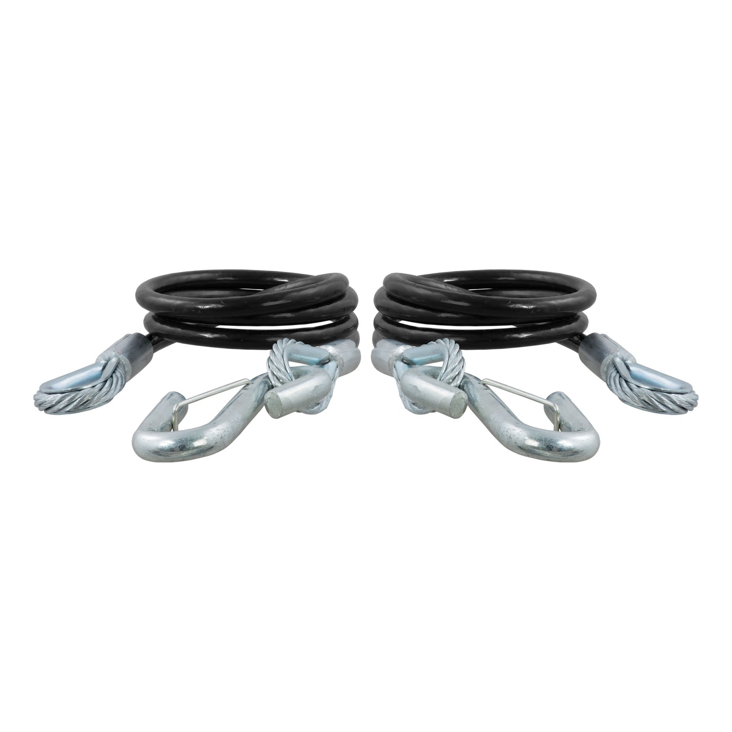 No matter how far you are planning to drive -- down the street or across the state -- using safety chains when you tow is smart, safe and required by law. Without safety chains attached, there is a serious risk of danger if your trailer becomes uncoupled from your trailer hitch. Play it safe with safety chains, and play it even safer with safety chains from CURT. CURT has a few different options when it comes to securing your trailer. An alternative to traditional safety chains is CURT safety cables. Safety cables are a medium-duty safety option and are very effective for most standard trailers. CURT safety cables are coiled so they do not drag on the ground, and they are fitted with safety latches, instead of S-hooks, to prevent them from becoming unhooked even over bumps and rough roads. One unique feature of CURT safety cables is their vinyl coating. Being coated in a vinyl skin keeps these cables well protected from rust, reduces the amount of noise they make and makes them easier to handle. These particular safety cables offer a minimum break force of 5,000 lbs. and measure a total length of 42".In our book, making safety a priority when you tow is a must. We offer all the safety equipment needed for successful towing, from our electrical components to our safety chains. The next time you hitch up for an adventure, always Bring It safely with CURT.