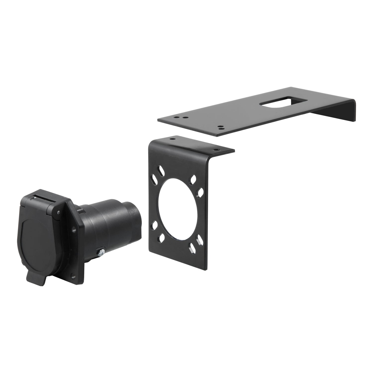 CLAMP-ON BRACKET MOUNT FOR 7 WAY SOCKETS CURT electrical connector brackets provide a simple solution for mounting wiring to your trailer hitch on the rear of your vehicle. Connector wires can be a nuisance when they are just lying around. They can get tangled up with cargo and even damaged. An electrical connector left to hang off the back end of your vehicle is an even greater hazard. Secure, protect and optimize the use of your electrical connector by mounting it with a CURT connector bracket. This trailer wire connector bracket is designed to be a universal, clamp-on mount for a 7-way socket. It features sturdy steel construction and comes with an adjustable worm gear hose clamp for quick, no-drill installation on your vehicle or trailer hitch. When it comes to plugging in your trailer lights, it pays not to skimp out. CURT electrical is the smart way to ensure that your trailer lights and electrical systems are prepared for the road ahead. Keep the power flowing, no matter where your adventures take you, with quality electrical products from CURT.