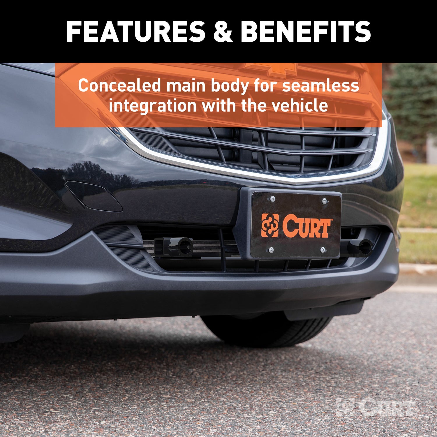 CURT tow bar base plates are engineered for a custom fit on each unique vehicle. This custom tow bar base plate fits select years of the Chevy Equinox (see application info to verify fitment). It features an OE style design to fully integrate with the front of the vehicle and maintain a factory look. This Chevy Equinox tow bar baseplate is constructed from high-quality steel and is precisely welded for a perfect fit. It is physically tested for absolute safety and peace of mind while dinghy towing. It also features a unique co-cured finish of liquid A-coat and highly durable powder coat to protect against the outdoor elements. This base plate for towing comes with attachment tabs, safety cables and installation hardware.