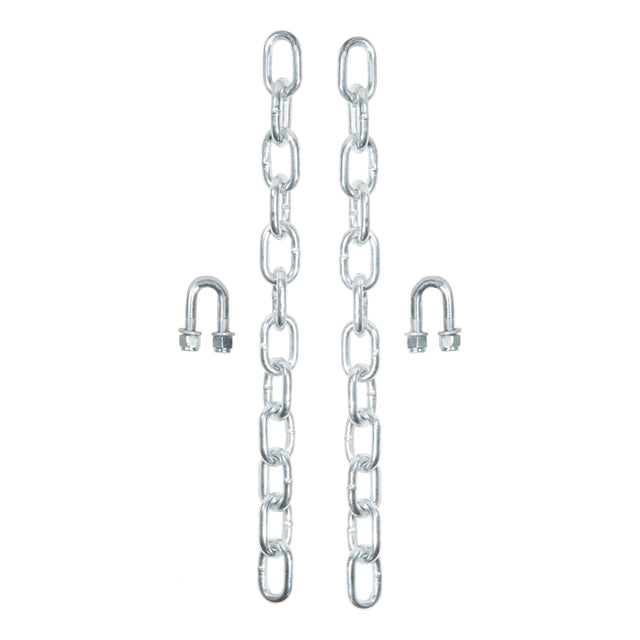 The CURT weight distribution hitch is a specialized towing system that provides improved vehicle and trailer control by leveling the trailer and more evenly distributing its tongue weight across the trailer's and vehicle's axles. Weight distribution hitches are commonly used on travel trailers and campers but can also be applied to other large loads. This replacement spring bar chain kit is designed to fit a variety of CURT weight distribution hitches, including trunnion bar and round bar. The chains help attach the spring bars to the trailer, using hookup brackets, and provide easy spring bar tension adjustment. This kit includes two complete spring bar chains with two chains, two U-bolts, four lock nuts and four washers. Spring bars are not included.