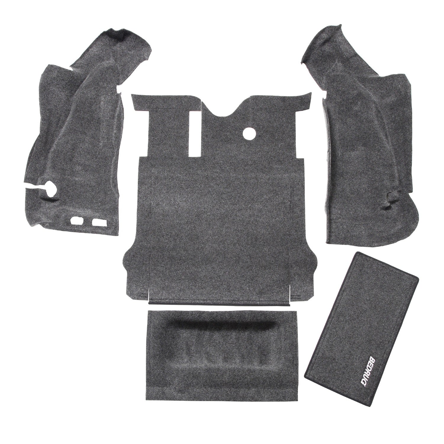 This 100 waterproof, fully custom-molded die cut system is sold as a 3pc front and 4pc rear kit and installs quickly without the need to remove any seat brackets or the center console. Individual pieces can be quickly removed and hosed off after a long day on the trail if desired. The BedRug material dries quickly, resists all harsh chemicals, and will not stain, stink, mold or mildew. The 1/4-inch polypropylene foam kit, with provided heat shields, insulates your interior from road noise and heat.
