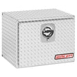 Under Bed Tool Boxes are designed for heavy-duty trucks and semi trucks to keep larger, heavier items and tools secure, yet easily accessible. The Model 627-0-02 is an aluminum diamond plate compact size underbed truck tool box with a storage capacity of 4.3 cu ft. The Clear ARMOR TUF(R) Powder Coat finish ensures years of dependability. The rotary style, two position latch helps protect against theft and weather.