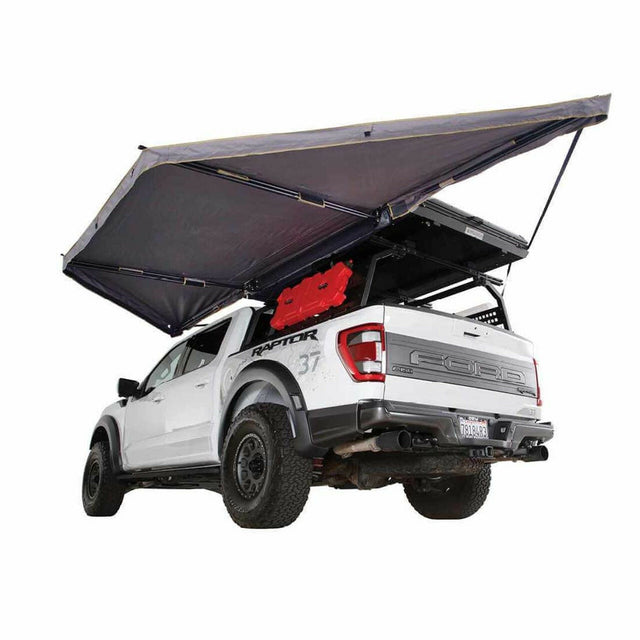 The Overland Vehicle Systems Nomadic 180LTE Awning is an excellent choice for anyone looking for a high-quality, durable awning. With its 180-degree coverage, this awning provides plenty of shelter for you, your family, or friends. We've taken our best in class Nomadic 180 Awning, and tweaked a few things to design the Nomadic 180LTE Awning for customers that need a lighter and more compact design without sacrificing functionality. Whether you're an experienced Overlander, Camper, Outdoors Enthusiast, Adventurer or just getting started, the Overland Vehicle Systems Nomadic 180LTE Awning is an excellent choice for you. Superior FunctionalityThe Overland Vehicle Systems Nomadic 180LTE Awning requires no poles for set-up, thanks to the reinforced oversize hinge and heavy-duty rafters. The Nomadic 180LTE Awning is made from 280G poly cotton rip stop material with heat sealed seams, ensuring that you won't have any leaks, no matter what size rain you're dealing with. Plus, if you see bad weather coming, you can quickly deploy the four pivoting aluminum poles and use the supplied ropes to provide stability to the awning. The 180 degree design means you'll have plenty of protection from the sun and other elements. And, if necessary, you can even add the optional Nomadic 180LTE Awning walls to take on mother nature. When it's time to pack up, the awning easily folds and secures in a 1000g PVC cover. So, whether you're needing protection from the sun or inclement weather, the Overland Vehicle Systems Nomadic 180LTE Awning has you covered. Features:The Overland Vehicle Systems Nomadic 180LTE Awning is the perfect solution for anyone in need of reliable, free-standing shelter. Made with quality materials, this awning provides up to 59 square feet of coverage and can be used at a full 180 degrees. The Overland Vehicle Systems Nomadic 180LTE Awning is both easy to set up, the Nomadic 180LTE Awning is supported by 4 integrated drop-down legs, 4 integrated 1 1/8 inch tubular heavy-duty rafters supported on a Heavy-Duty Aluminum Frame. The Nomadic 180LTE Awning is made from 280G poly cotton rip stop material with heat sealed seams, easily folds, and secures in a 1000g PVC cover. This Nomadic 180LTE awning features a universal L mounting bracket solution that can be mounted onto a variety of roof racks, making it perfect for your off-road rig. The awning comes with a 4-year warranty, ensuring your satisfaction. Included: QTY 1 Overland Vehicle Systems Nomadic 180LTE Awning Passenger Side Hardware Stakes Tension Straps Ropes Four-Year Limited WarrantyOverland Vehicle Systems Nomadic 180LTE Awning comes with an industry best 4 Year Limited Warranty. Overland Vehicle Systems warranty includes coverage for products with manufacture defects in materials and workmanship.Details: Part Number: 19609917 UPC Code: 810038739298 Weight: 33.5 lbs Cleaning: Soap and Water