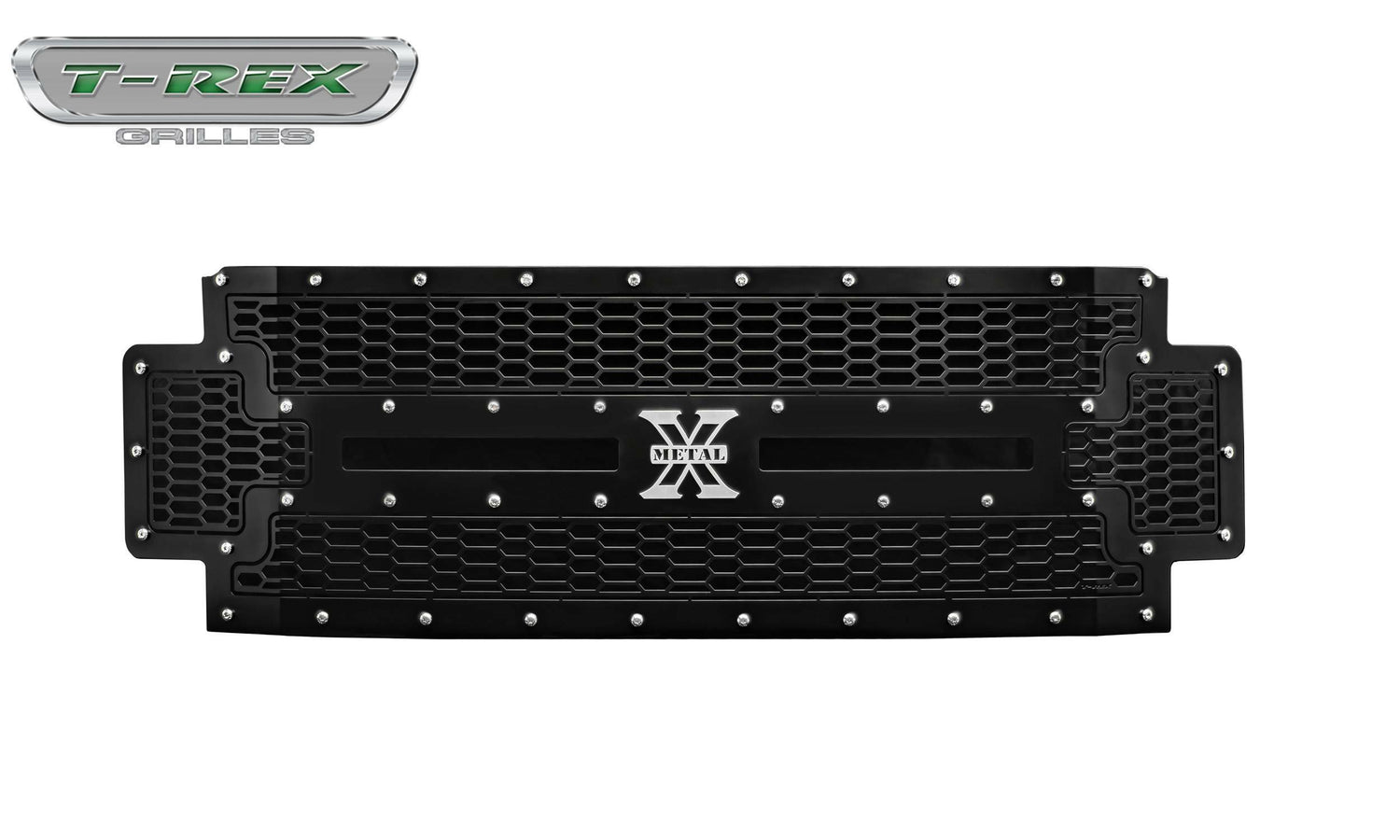 Laser X Grilles add a modern update to the traditional X-Metal Grilles with the upgraded laser cut steel 1-piece construction. The main grille design features a unique repeating Honey Comb pattern and the X-Metal studs and badging are prominently displayed on the black powdercoated mild steel. Laser X Grilles are available with chrome and black studs as well (Stealth Laser X Series). Our uncompromising quality begins with advanced 3D CAD supported engineering and design. All our products undergo rigorous testing for fit, finish, drivability and durability. Each part starts with a custom jig using laser cut materials, precision TIG welding and meticulous assembly and quality control. This dedication of American craftsmanship shows in every product that leaves our facility in California. All our black powder coated grilles go through a multi-stage process, first they are sandblasted to prepare the surface for our epoxy primer base coat. Second, they are cleaned to remove contaminants from the sandblast process. Then an epoxy primer base coat is applied and cured to seal the entire surface, finally the color top coat is applied over the primer and cured to provide long lasting protection and a high-quality OEM finish.