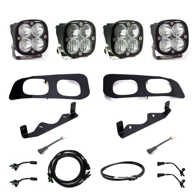 The Baja Designs Squadron “Unlimited” dual fog pocket LED light kit for the 2023-on Ford F-250/350 Super Duty will separate your truck from the rest of the pack offering an off-road capable light package to light up the trails. Enhance your stock fog lights with this versatile four-light kit complete with mounting brackets all essential components for a hassle-free installation and upfitter wiring harness that will allow enthusiasts to wire into the stock upfitter auxiliary switches. Our fog pocket kits have been designed specifically for the 2023-on Ford Super Duty trucks improving visibility on the trail and safety in conditions such as dust fog rain or snow. For max visibility and distance while on the trails the Squadron Racer Edition offers 2 800 raw lumens each while the Squadron Pro offers 4 095 raw lumens each with a mixture of spot and driving combo lens patterns to give more distance and illumination of lighting zones 1-3 while offering distance lighting within zones 4 and 5. This makes your driving experience safer and more enjoyable. Have the assurance with our 30-day satisfaction guarantee and lifetime limited warranty providing unparalleled protection for your investment.