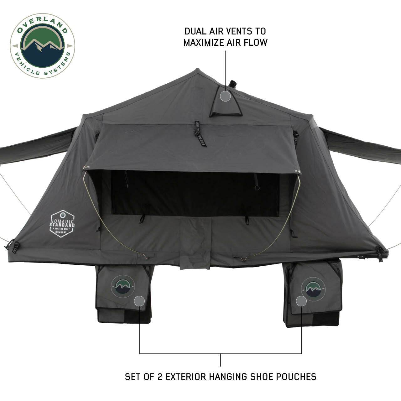 Superior FunctionalityWe all know that one of the best parts of any outdoor adventure is coming home to a comfortable bed at the end of the day. But what if you want your home to be a Roof Top Tent for your adventure? That's why we added many functional features in our Overland Vehicle Systems Nomadic 3 Standard Roof Top Tent.
