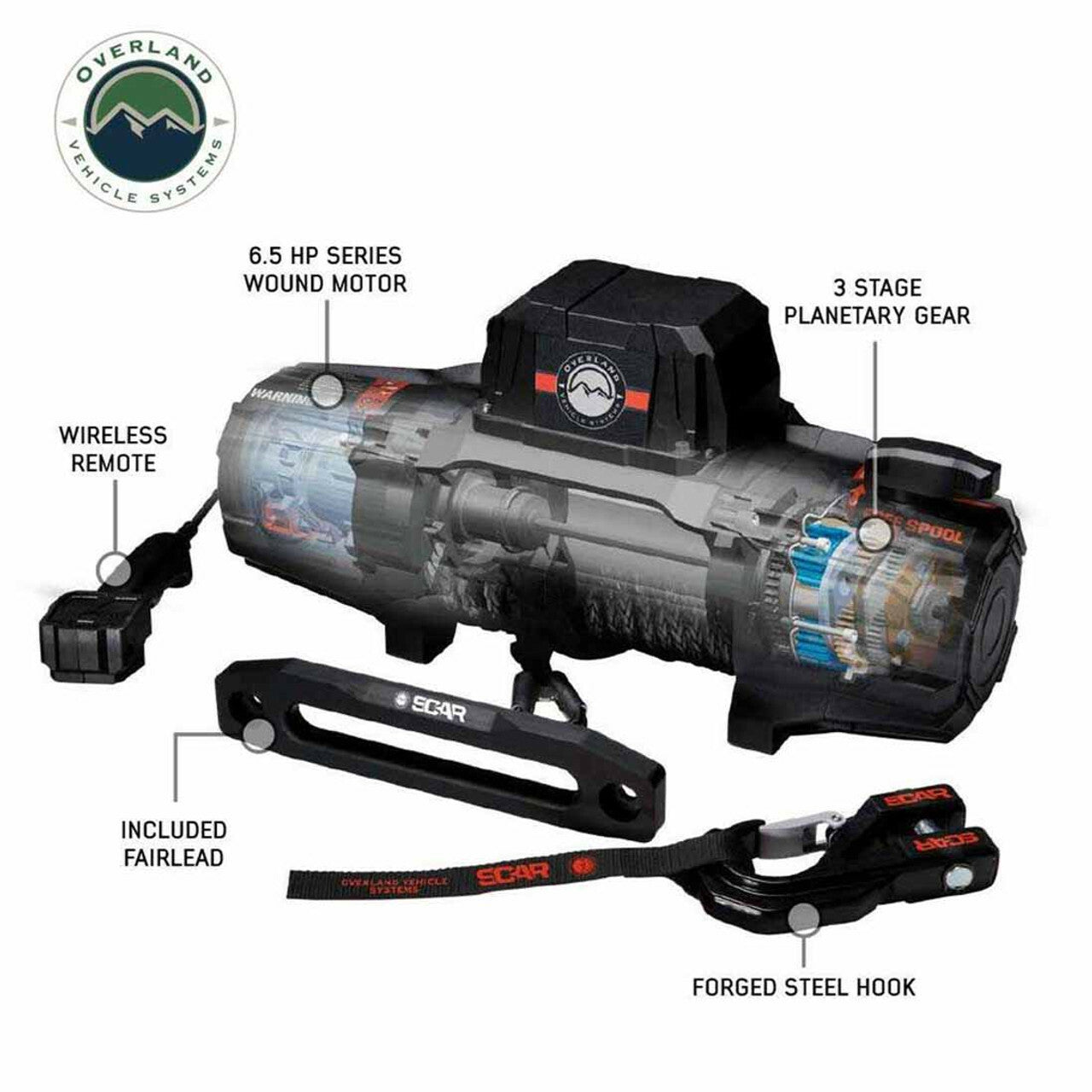 Overland Vehicle Systems - SCAR 10P - 10,000 lb. Winch With Synthetic Rope and Wireless Remote - 19099901 is backordered and will ship as soon as it is back in stock.