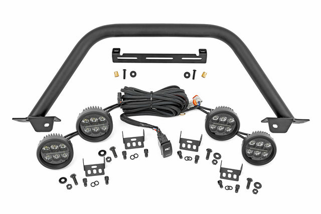 Rugged Style and Protection. Create a custom front-end look with the Rough Country Bronco Safari Bar. Rough Country's Bronco Safari Bar is just what you need. Offering protection from both on and off-road hazards it's perfect for tackling any adventure. Plus with multiple LED mounting solutions you can be sure you'll have plenty of light - no matter where you go. And if you're looking to add a winch the Safari Bar works perfectly with Rough Country's High Mount Winch Kit. This is the perfect accessory for off-roading enthusiasts who strive to go farther and higher every time they hit the trails. Built to Withstand. The Rough Country Bronco Safari Bar is the perfect accessory if you're looking to get your Bronco ready for an adventure. This tough bar is made from high-quality steel with 1 7/8" x .095" wall tubing to ensure maximum strength. The mounting flanges are also made from 7-gauge material so you know it's built to last. In addition it comes in a corrosion-resistant black powder coat finish to withstand even the most challenging terrain. Rough Country's Bronco Safari Bar is a perfect choice if you're tackling rugged trails or just want to add a little extra style to your ride. Installation and Warranty. This easy-to-install bar is perfect for anyone looking to take their Bronco to the next level. The Safari Bar mounts directly to your modular bumper using factory hardware and can be installed as a stand-alone unit. You also get peace of mind knowing that your purchase comes with a limited lifetime replacement warranty for manufacturer defects. With Rough Country's industry-leading warranty you can be sure that your Rough Country lift kit is protected from structural and workmanship damage after purchase.